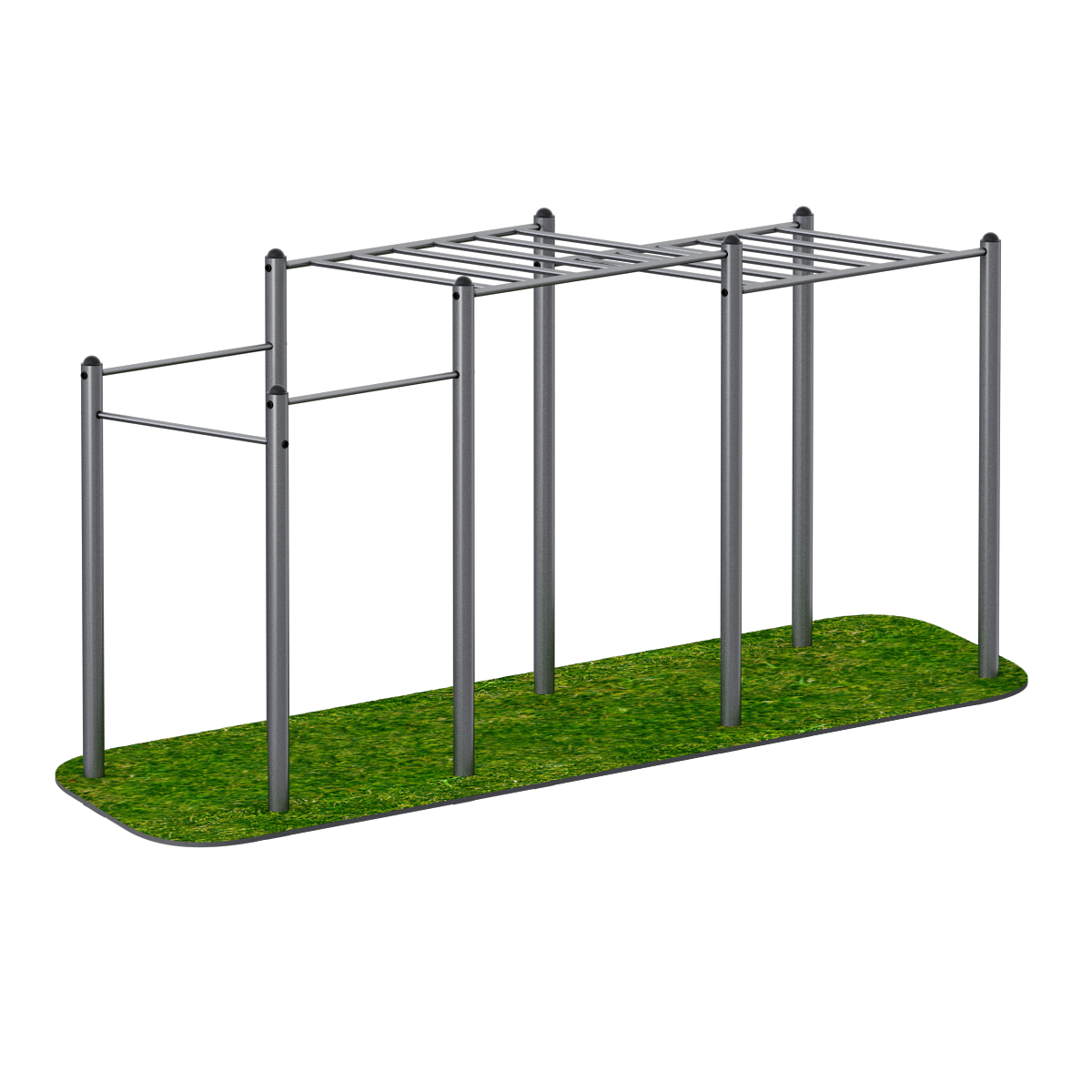 Рукоход двойной двухуровневый, 5 турников и шведская стенка