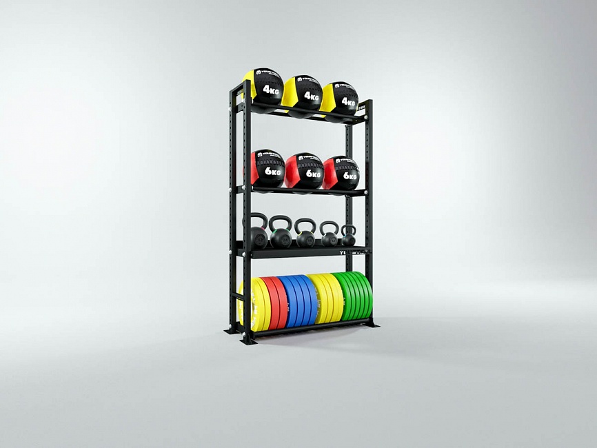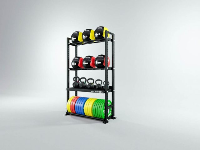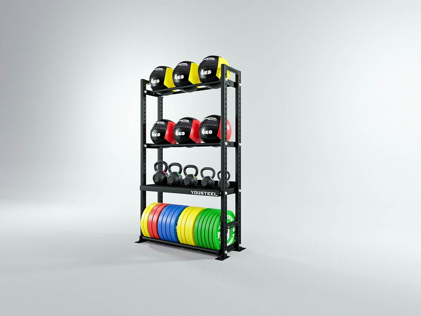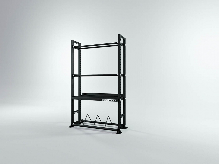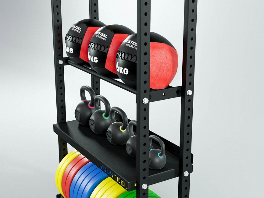 Модульные стеллажи YOUSTEEL – универсальное и простое решение по организации эффективного хранения оборудования в зале. Они отлично вписываются в интерьер любого кроссфит-зала.