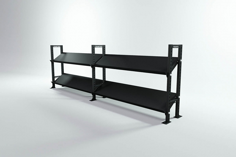 Модульные стеллажи YOUSTEEL – универсальное и простое решение по организации эффективного хранения оборудования в зале. Они отлично вписываются в интерьер любого кроссфит-зала.