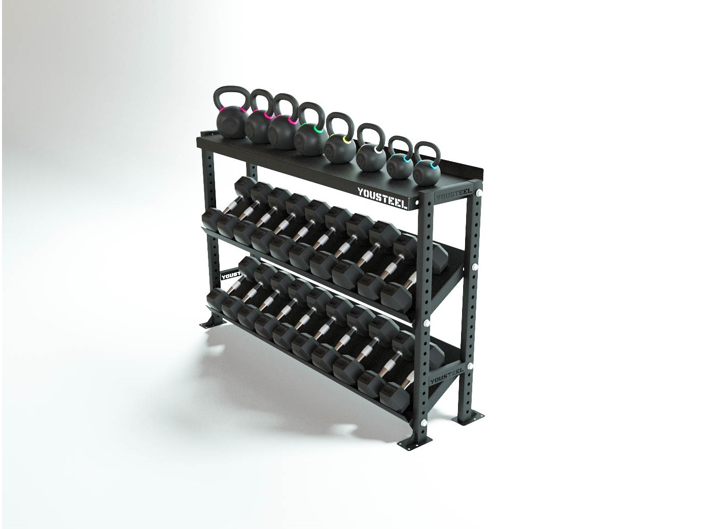 Модульные стеллажи YOUSTEEL – универсальное и простое решение по организации эффективного хранения вашего оборудования в зале. Они отлично вписываются в интерьер любого спортивного зала. Стеллаж YOUSTEEL изготавливаются из стали толщиной 3 мм, поверхность покрыта порошковой краской.