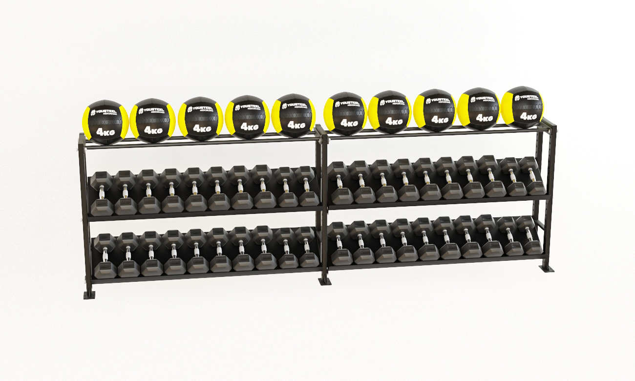 Модульные стеллажи YOUSTEEL – универсальное и простое решение по организации эффективного хранения вашего оборудования в зале. Они отлично вписываются в интерьер любого спортивного зала. Стеллаж YOUSTEEL изготавливаются из стали толщиной 3 мм, поверхность покрыта порошковой краской.