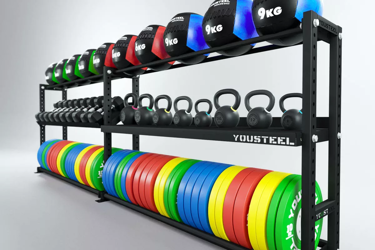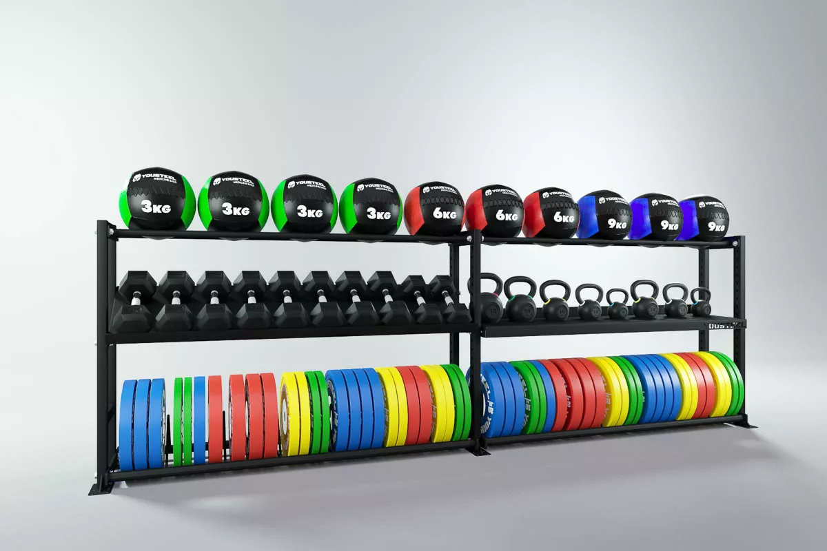 Модульные стеллажи YOUSTEEL – универсальное и простое решение по организации эффективного хранения вашего оборудования в зале. Они отлично вписываются в интерьер любого спортивного зала. Стеллаж YOUSTEEL изготавливаются из стали толщиной 3 мм, поверхность покрыта порошковой краской.