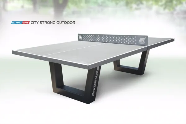 Основание стола City Strong Outdoor выполнено с применением армированного бетона, что обеспечивает его стойкость перед неблагоприятными воздействиями. Из-за своего внушительного веса — 890 кг, стол не требует дополнительного крепления к поверхности, к столу прилагается подробная инструкция по сборке. Столешница теннисного стола City Strong Outdoor изготовлена из супер прочного камня Super Stone, покрытого специальной пропиткой. Камень стойко выдерживает любые погодные условия и перепады температуры, не деформируется от сильных ударов, а наоборот делает их более точными. Также стол City Strong Outdoor оснащен встроенной металлической перфорированной сеткой толщиной 3 миллиметра, что защищает стол от актов вандализма.