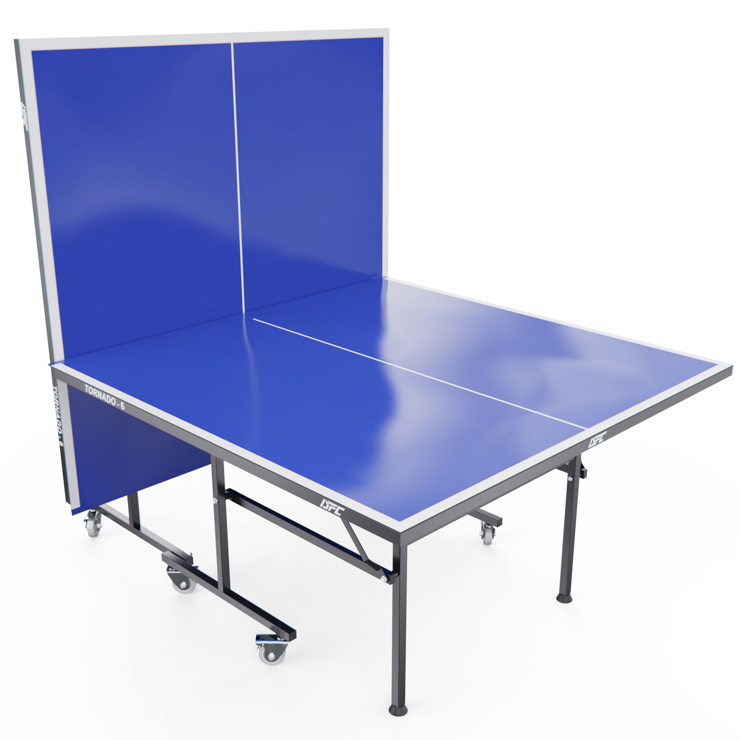 Складная конструкция делает теннисный стол удобным для хранения и транспортировки. В сложенном виде модель отличается компактностью и занимает минимум места, что позволяет удобно хранить её даже в ограниченном пространстве и без труда перемещать с помощью транспортировочных роликов.