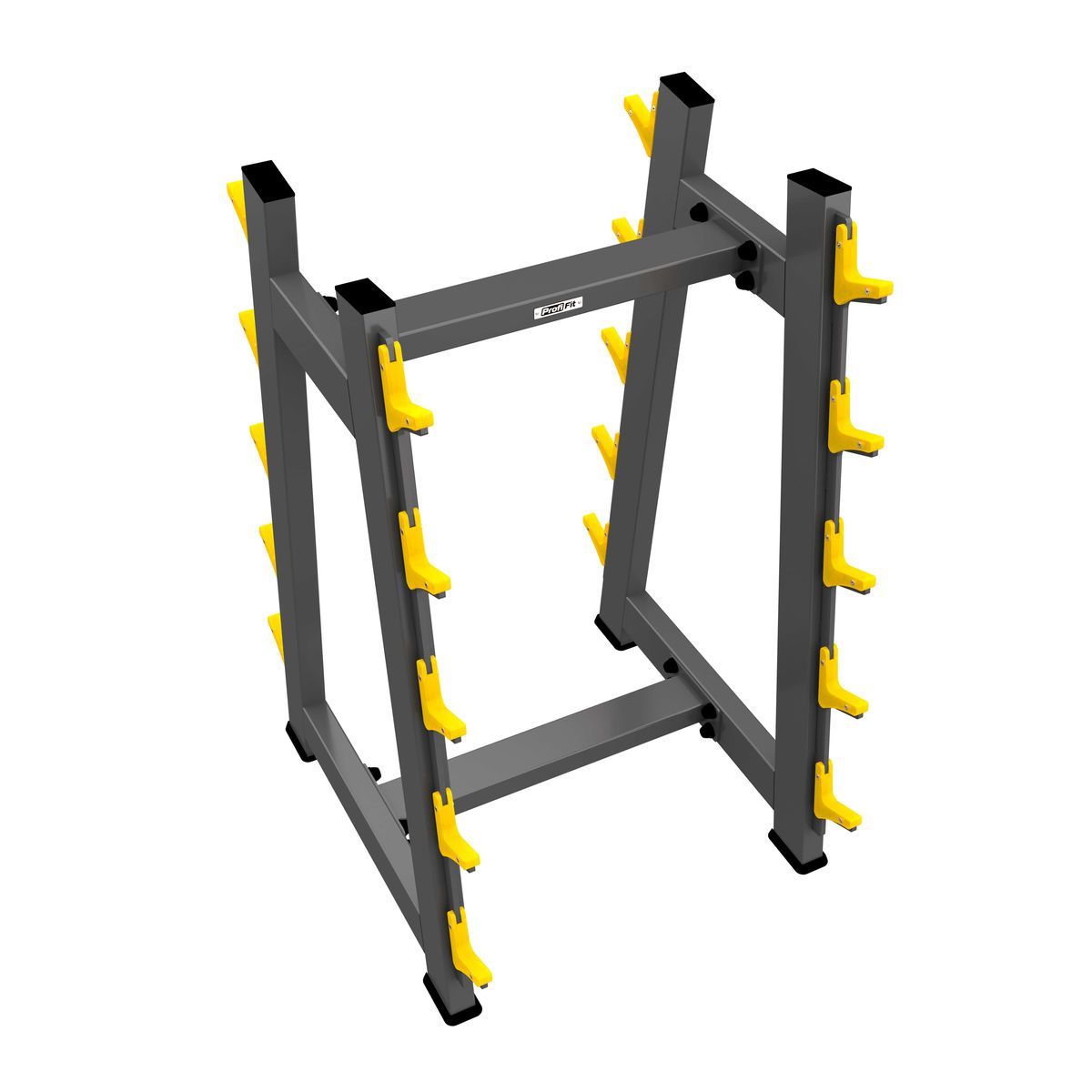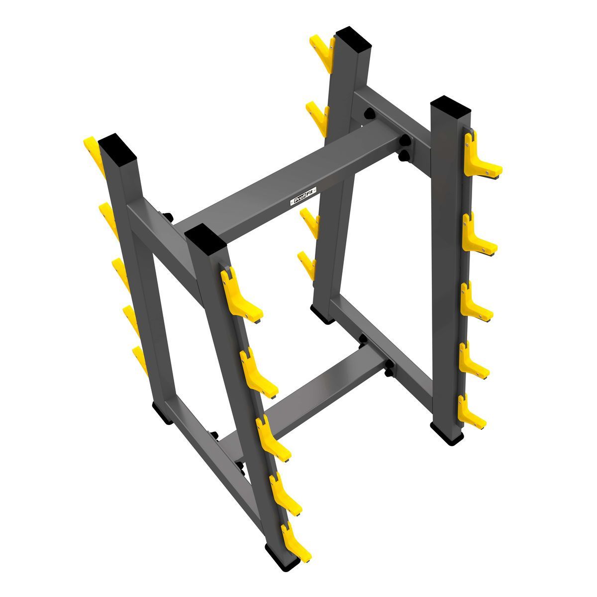 Стойка для штанг А-3055 соответствует всем требованиям профессионального оборудования. Конструктивные элементы рамы изготовлены из высококачественной стали, покрыты износостойкой двухслойной полимерной краской. Толщина профиля 3 мм имеет большой радиус угла, что придает тренажеру более элегантный внешний вид. Резиновые подпятники обеспечивают устойчивость и предотвращают повреждение полового покрытия в помещении. Позволяет поддерживать порядок в зоне силовых тренировок, экономит место, обеспечивает безопасность хранения 10 фиксированных штанг.