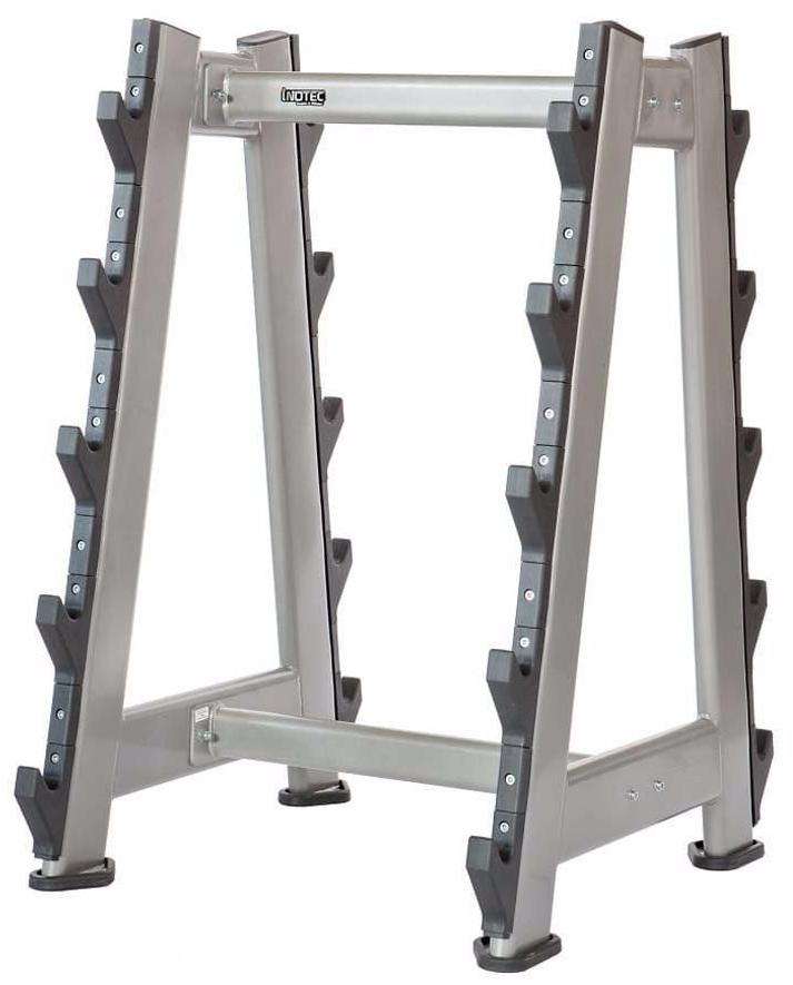 Стойка для фиксированных штанг Inotec Е42 представляет собой надежное решение для хранения различных типов фиксированных штанг. Она идеально подходит для тренажерных залов, где требуется организовать хранение штанг в компактной и удобной форме. Стойка легко вмещает большое количество штанг, что помогает поддерживать порядок и экономить пространство.