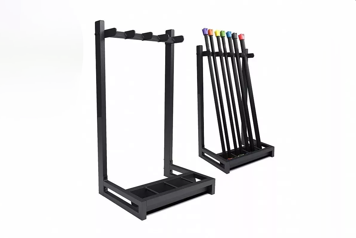 Стойка для хранения способна вместить до 20 штук бодибаров. Cтойкe для бодибаров легко разместиться даже в маленьком зале для групповых занятий. Компактная и устойчивая конструкция стойки выполнена из стального профиля, поставляется в разобранном виде, занимает мало места при транспортировке, легко собирается и демонтируется. Покрыта двумя слоями порошковой краски и устойчивой к сколам, царапинам и коррозии.