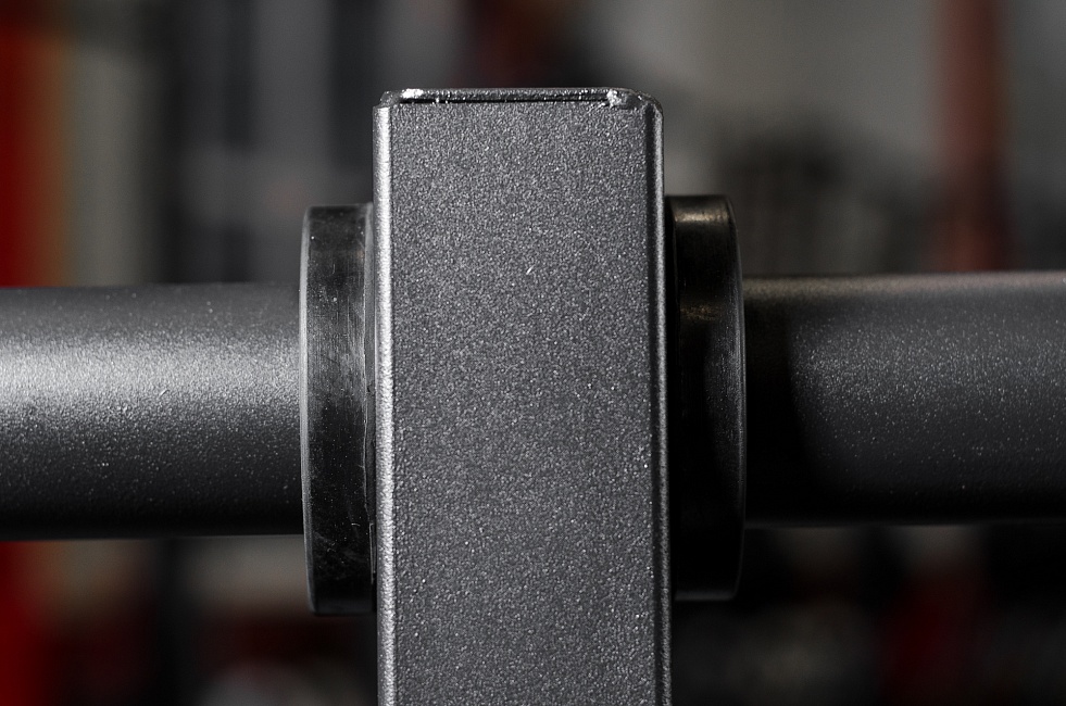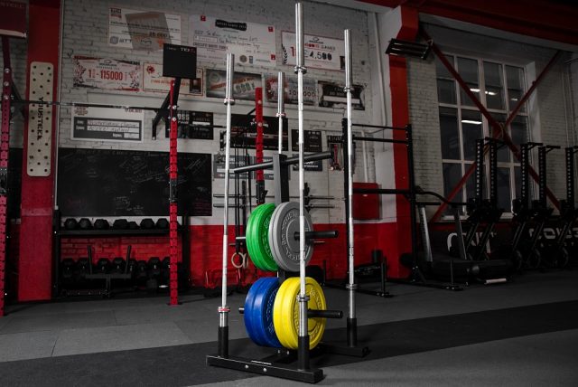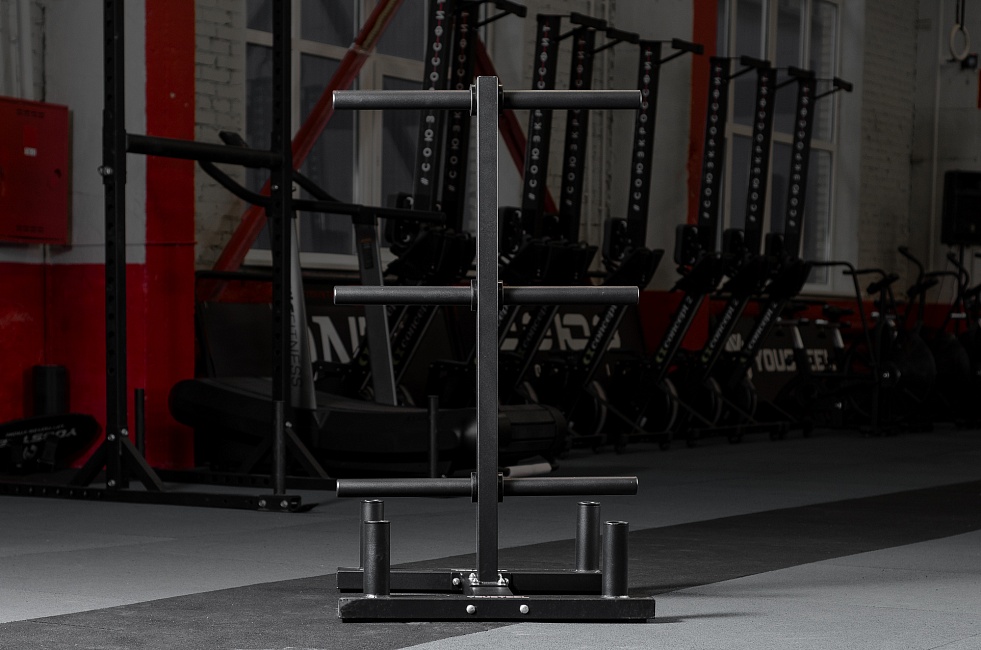 Стойка хорошо подойдет в зону тяжелой атлетики – на ней помещается достаточное количество дисков для организации двух полноценных рабочих мест.