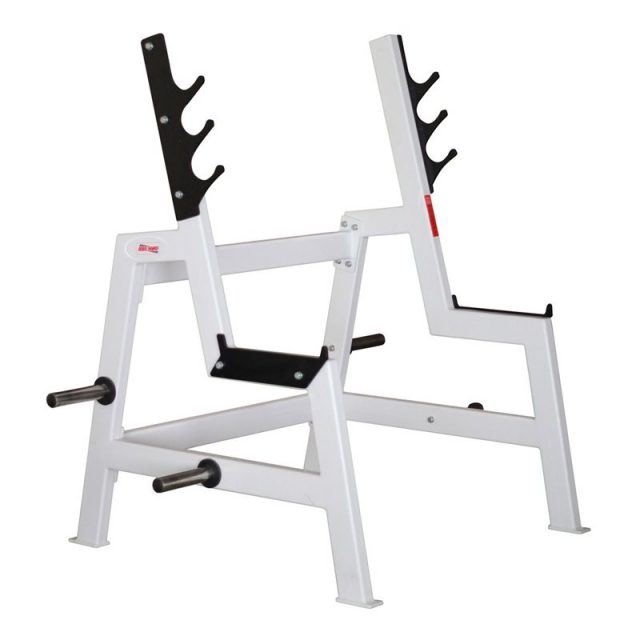 Этот тренажер принадлежит к группе скамьи, стойки и относится к базовым, обязательным снарядам в спортивном зале. Составные части и использованные материалы высокой степени надежности позволяют пользовать стойку круглосуточно. Стойка для приседаний применяется при тренировке мышц ног (приседания со штангой), мышц спины (наклоны со штангой на плечах).