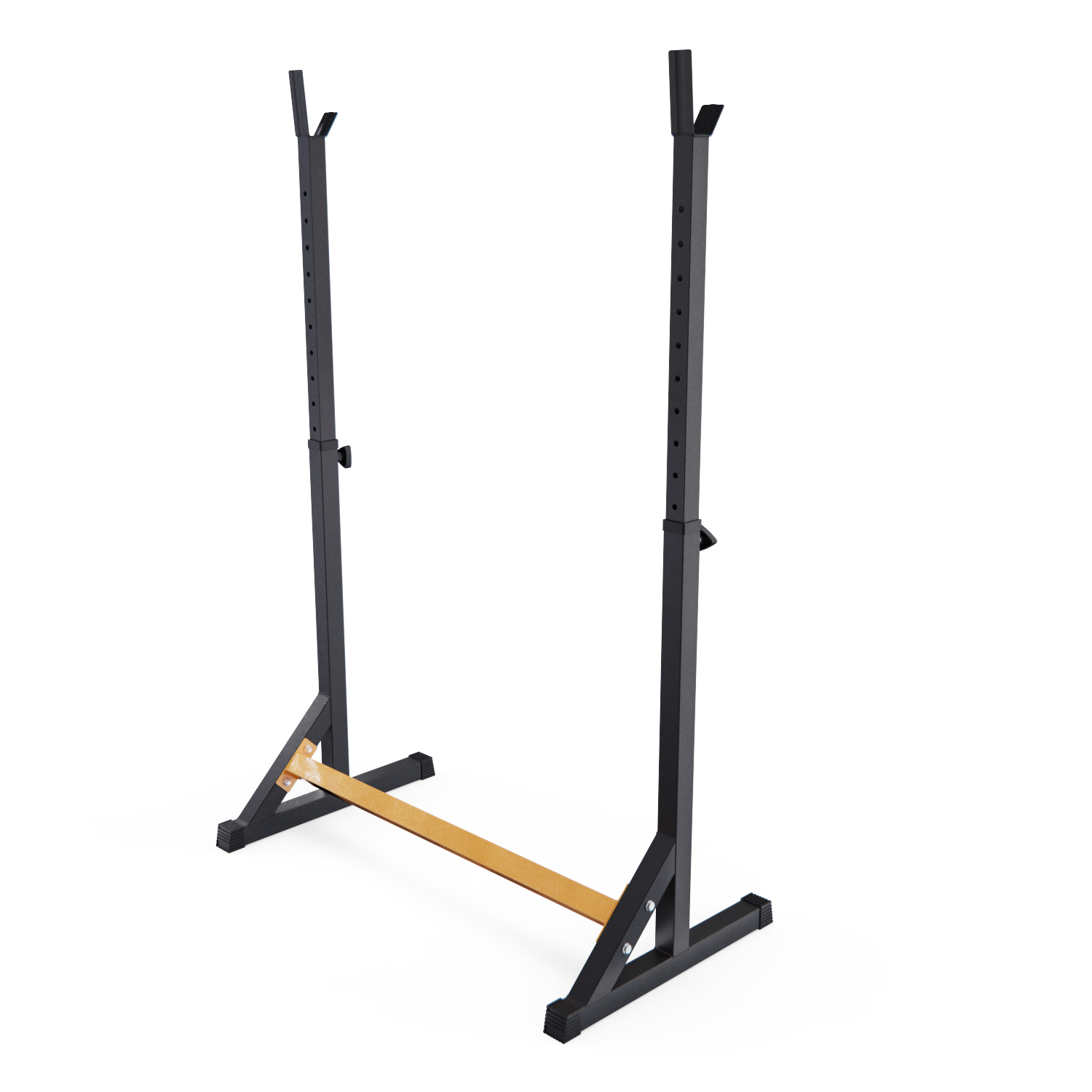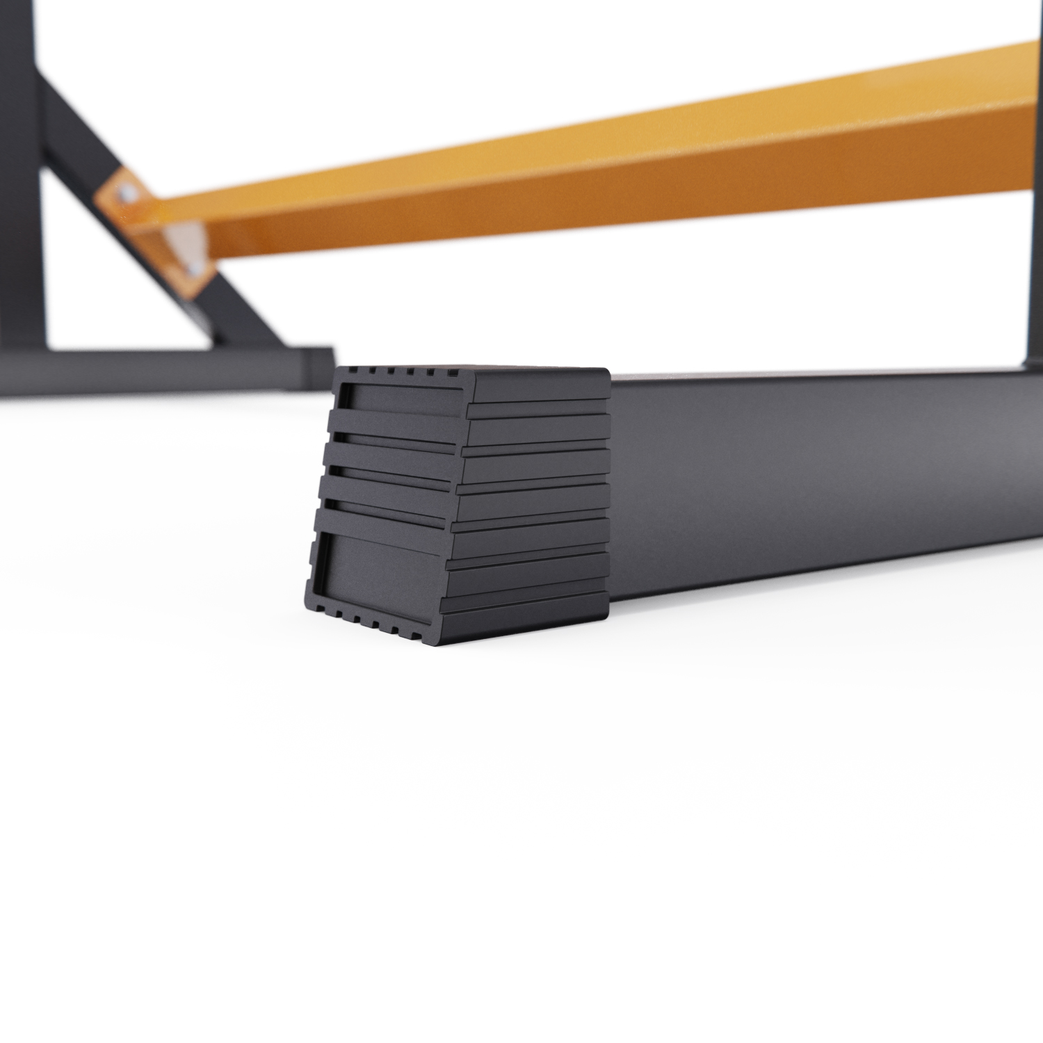 Устойчивое основание стойки для приседаний из высокопрочной профильной трубы 50 х 50 х 1,5 мм выдерживает динамическую нагрузку до 150 кг (динамическая нагрузка – нагрузка на элементы конструкции в движении). Подходит для выполнения полного спектра упражнений со штангой: от приседаний и становой тяги до жима лежа.