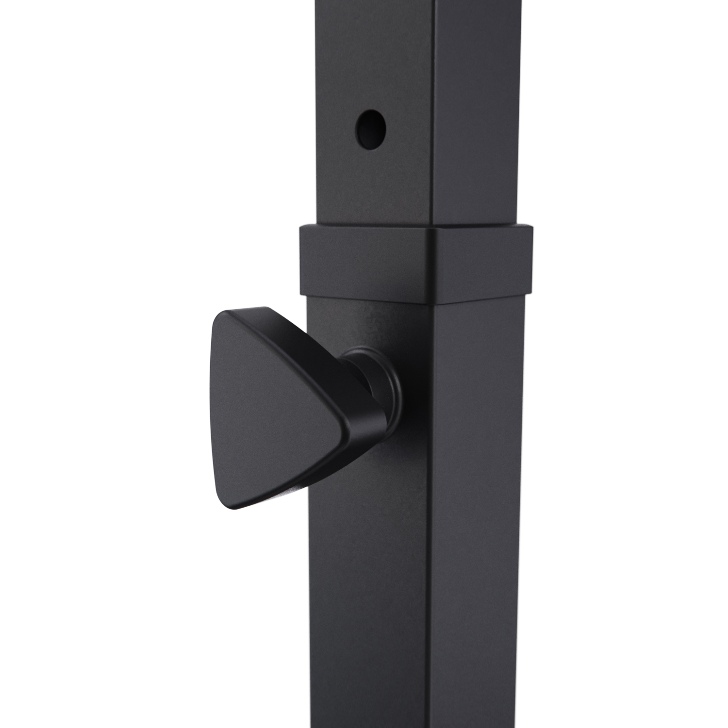Высота держателей под штангу легко регулируется без дополнительных инструментов при помощи ручки. Держатели под штангу стойки для жима регулируются по высоте на 7 уровней в диапазоне от 100 до 170 см (шаг 10 см). Нескользящие ножки надежно устанавливаются на полу и не царапают поверхность.