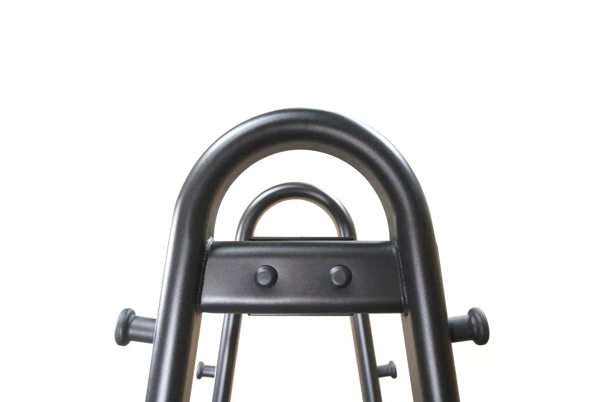 Стойка предназначена для организации хранения в коммерческих и домашних залах. Она изготовлена из овальной стальной трубы сечением 40х80мм и толщиной 2мм. Габаритные размеры: 920x870x1680мм. Вес: 39кг. Предназначена для хранения 10 штанг.
