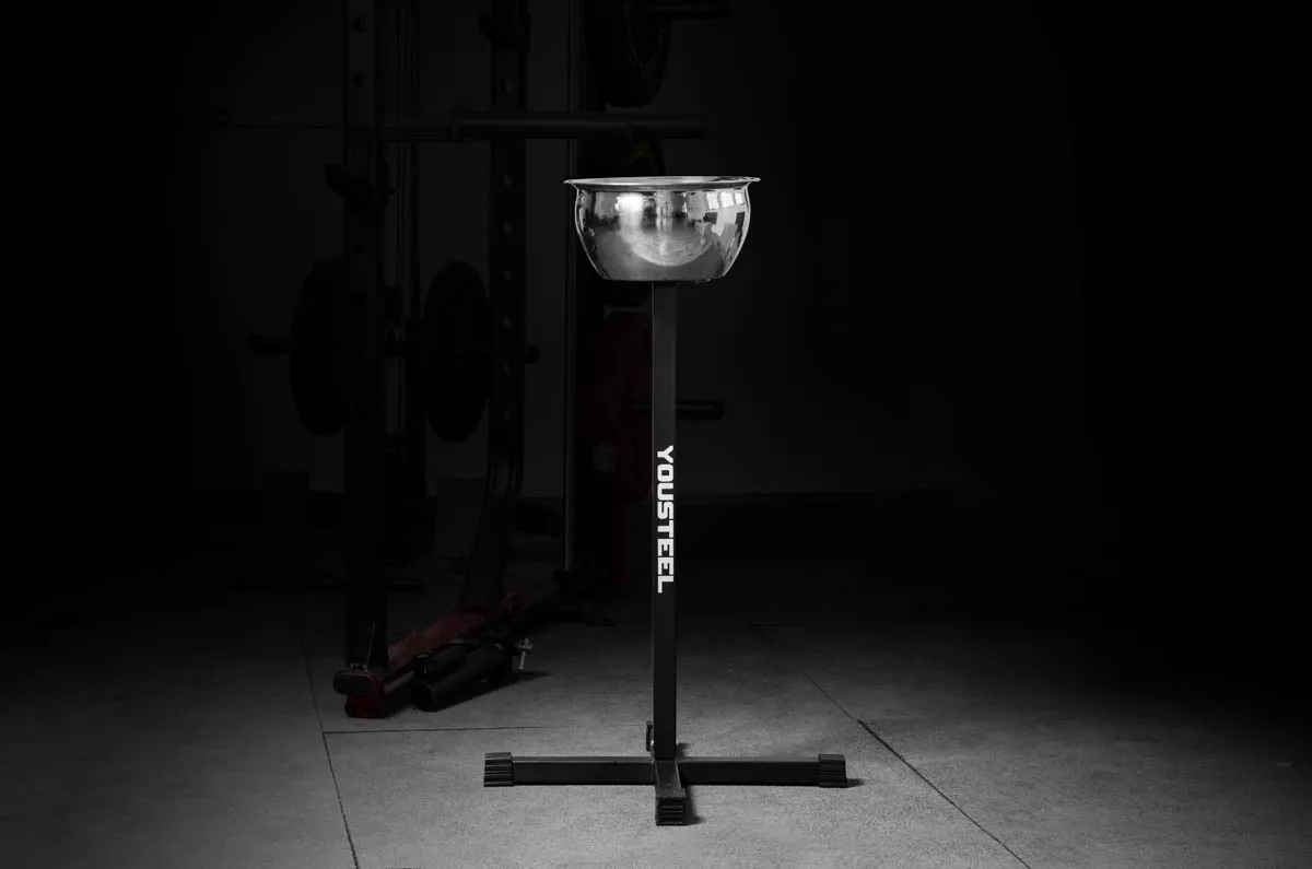 Стойка с чашей для магнезии — стильное решение по предотвращению возникновения беспорядка от использования магнезии. Глубокая чаша предотвратит разлет пыли, а высокая ножка обеспечит комфорт атлетам любого роста.