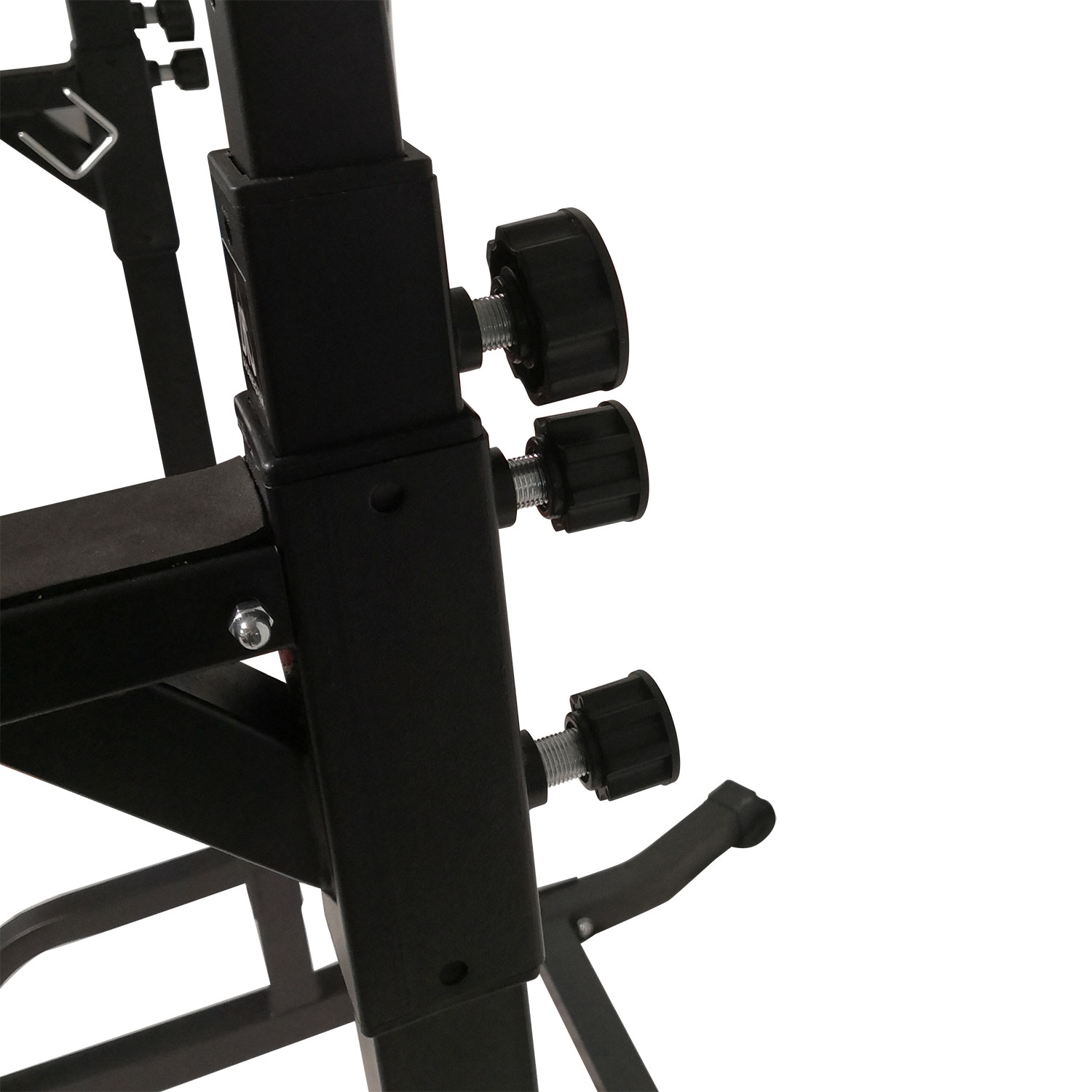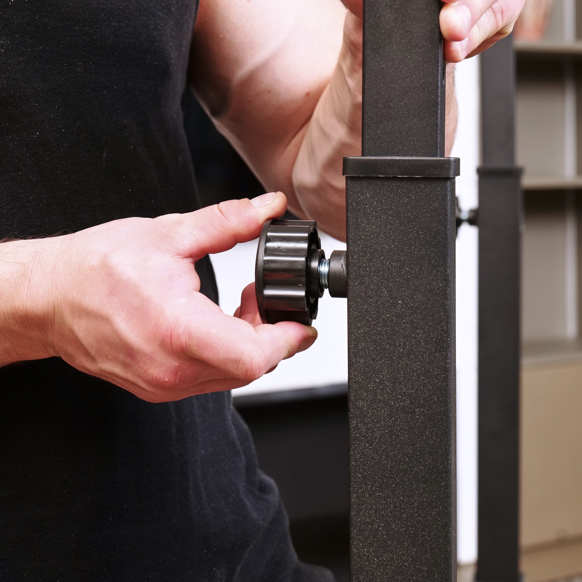 Держатели под штангу регулируются по высоте в диапазоне от 70 до 115 см. 15 уровней с шагом 5 см.
