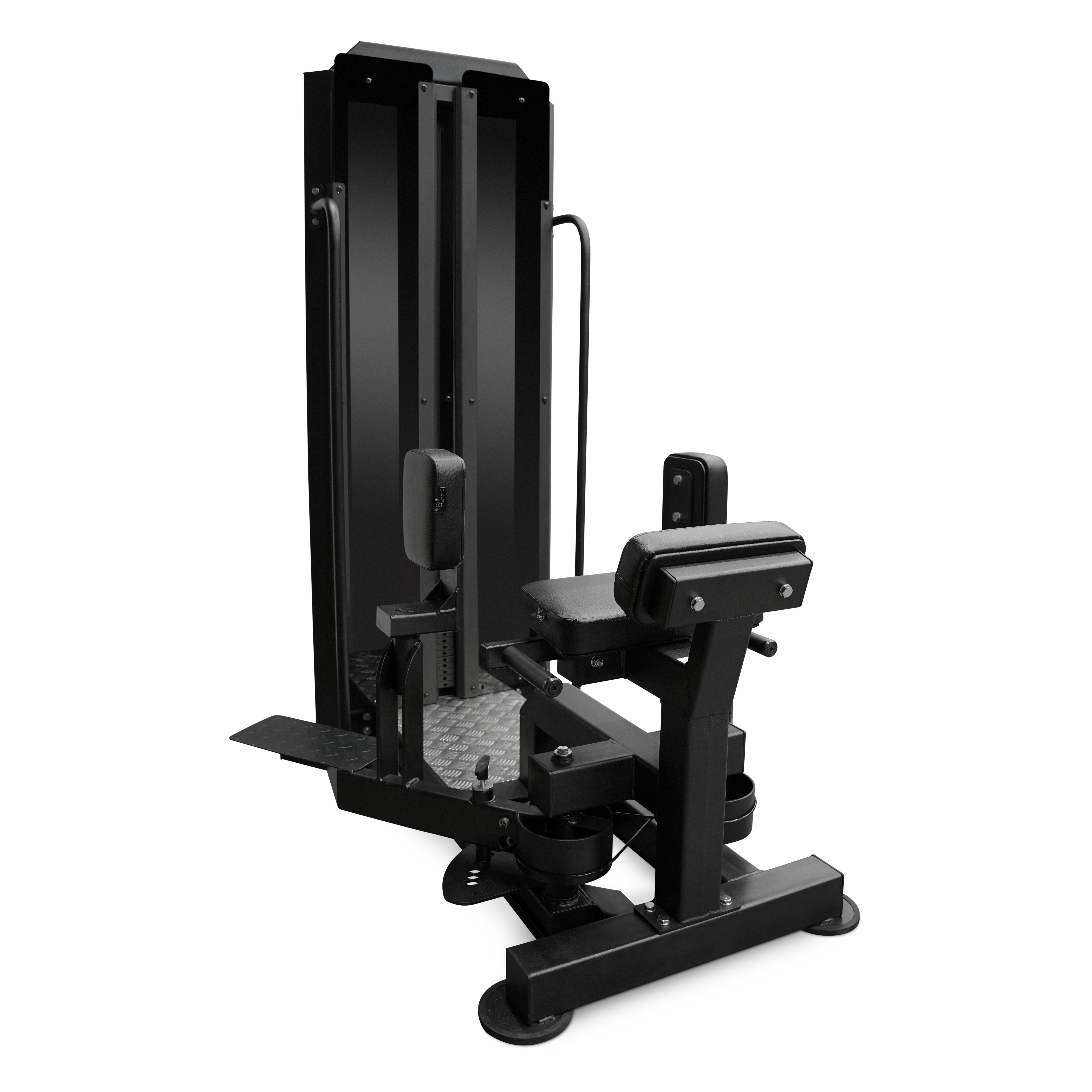 Для удобства пользователей предусмотрены мягкие валики для фиксации ног и регулируемые по высоте сиденье и поручни. Тренажёр оснащён транспортировочными роликами, которые позволяют легко перемещать его по залу.