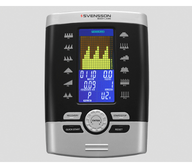 SVENSSON BODY LABS COMFORTLINE ESA — среднеразмерный высокотехнологичный электромагнитный эллипсоид с задним приводом, вобравший в себя массу самых современных инноваций. Конструкция рамы построена на базе биовекторной технологии body-Fit , которая предусматривает оптимальное положение рук, ног и торса по отношению к педалям и рукояткам. При этом система сбалансирована под пользователя практически любой комплекции. Занять наиболее оптимальное положение во время тренировки помогут двухпозиционные антискользящие педали увеличенного размера. Расстояние между педалями (так называемый «малый Q-Фактор S.Q.F. «) составляет всего 19 см — это одно из самых минимальных значений для эллипсоидов с задним приводом. Чем меньше такое значение, тем больше тренировка на тренажере приближена к естественным движениям во время бега. Приводная система представляет из себя сложный комплекс различных механических и биомеханических решений. За самое плавное скольжение на любых уровнях нагрузки отвечает электромагнитная система нагружения A-класса SpinMaster EMS , трехкомпонентный дисковый педальный узел с увеличенным радиусом body-Glide (длина шага — 41,8 см), а также сбалансированный маховик с инерционным весом 20 кг. Тренировочный компьютер представлен многофункциональным цветным LCD-дисплеем диагональю 14,5 см. В программный пакет входят 12 предустановленных программ, направленных на тренировку скоростных качеств, выносливости, укрепления сердечно-сосудистой системы и похудания. Помимо предустановленных программ, можно воспользоваться самостоятельно регулируемым ручным режимом, а также создать собственную программу. Для тренировок с контролем пульса существуют 4 пульсозависимые программы с предустановленными значениями 55%, 75%, 90% и 100% от целевого максимального пульса. Эргонометрическая функция (ватты) позволяет зафиксировать необходимый уровень нагрузки — он останется постоянным вне зависимости от скорости вращения педалей. По завершении тренировки функция Recovery оценит способность сердечно-сосудистой системы к восстановлению. К числу дополнительных характеристик эллипсоида относятся такие опции как транспортировочные ролики и компенсаторы неровностей пола. Таким образом, переместить изделие из одного места в другое не составит большого труда даже для хрупкой девушки, а компенсаторы позволят отрегулировать положение ножек на неровной поверхности. |
