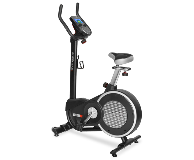 Генераторный велоэргометр серии HEAVY G (UPRIGHT TYPE) — флагман линейки велотренажеров SVENSSON BODY LABS с вертикальной посадкой. Здесь используются самые надежные узлы и компоненты, самый качественный пластик, а все характеристики выкручены на максимум. Благодаря усиленному толстому металлическому профилю нетто вес изделия составляет внушительные 38 кг. Тренажер устойчив, надежен и выдерживает пользователей тяжеловесов вплоть до 160 кг. Предметом особой гордости серии HEAVY G является внешний вид. Он является результатом очередной неповторимой авторской работы известного шведского интерьерного дизайнера Патрика Хагборга (Patrik Hagborg), с которым производитель тренажеров (Jörgen Svensson LLC, Швеция) разрабатывает свои премиальные серии. В основе визуальной концепции HEAVY G лежит черный цвет с добавлением элементов серебристого и красного. Первый придает оборудованию необходимую солидность — в определенной степени, даже брутальность. Более легкий серебристый — это отсыл к строгим и благородным краскам северной природы. Стремительный красный цвет выделяет значимые элементы и формирует общий образ премиального продукта, которым будет по праву гордиться его владелец. Одна из главных особенностей HEAVY G — генераторный тип нагружения. Такой тип традиционно относится к числу самых надежных и обладает высшим качеством педалирования среди всех велоэргометров. К числу преимуществ генератора также относится энергонезависимость. Для полноценной работы тренажера нет необходимости подключать его в розетку и тянуть питающий провод по всей комнате. Помимо всего прочего, это полностью «зеленая» технология», которая не требует никаких внешних источников энергии. То есть, во-первых, сохраняет природные ресурсы планеты и, во-вторых, позволяет сэкономить на счетах на электричество. Безусловно, генератор — важный, но не единственный компонент приводной системы тренажера. Система, получившая общее запатентованное название SpinMaster Generator , состоит из утяжеленного сбалансированного маховика весом 15 кг., трехкомпонентного педального узла (аналогичного горным велосипедам), многожильного кевларового ремня и преднатяжителя, а также трех внутренних высококачественных впрессованных подшипников. Выверенная биомеханика и эргономика также относятся к числу сильных сторон HEAVY G UPRIGHT. Подседельный штырь регулируется как в вертикальном, так и в горизонтальном положениях. Поверхность штыря покрыта хромом — это не только элемент дизайна, но и надежная защита от царапин. Большая мягкая подушка сидения анатомической формы с гелиевыми вставками обеспечивает максимальный комфорт во время тренировки вне зависимости от того, сколько времени Вы проведете, выполняя свои спортивные задачи. Педали с рифленой антискользящей поверхностью и регулируемые прорезиненные ремешки надежно фиксируют положение стопы любого размера. Многопозиционный руль, полностью закрытый от влаги прорезиненной пеноуретановой защитой, регулируется по кругу и дает возможность принять спортивное «шоссейное» положение. Тренировочный компьютер представлен многофункциональным цветным LCD-дисплеем диагональю 14 см. В программный пакет входят 12 предустановленных программ, направленных на тренировку скоростных качеств, выносливости, укрепления сердечно-сосудистой системы и похудания. Помимо предуст