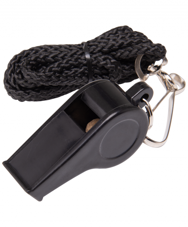 Большой пластиковый свисток Jögel с пробковым шариком. В комплекте шнурок. Фирменная упаковка. Длина свистка 6 см.