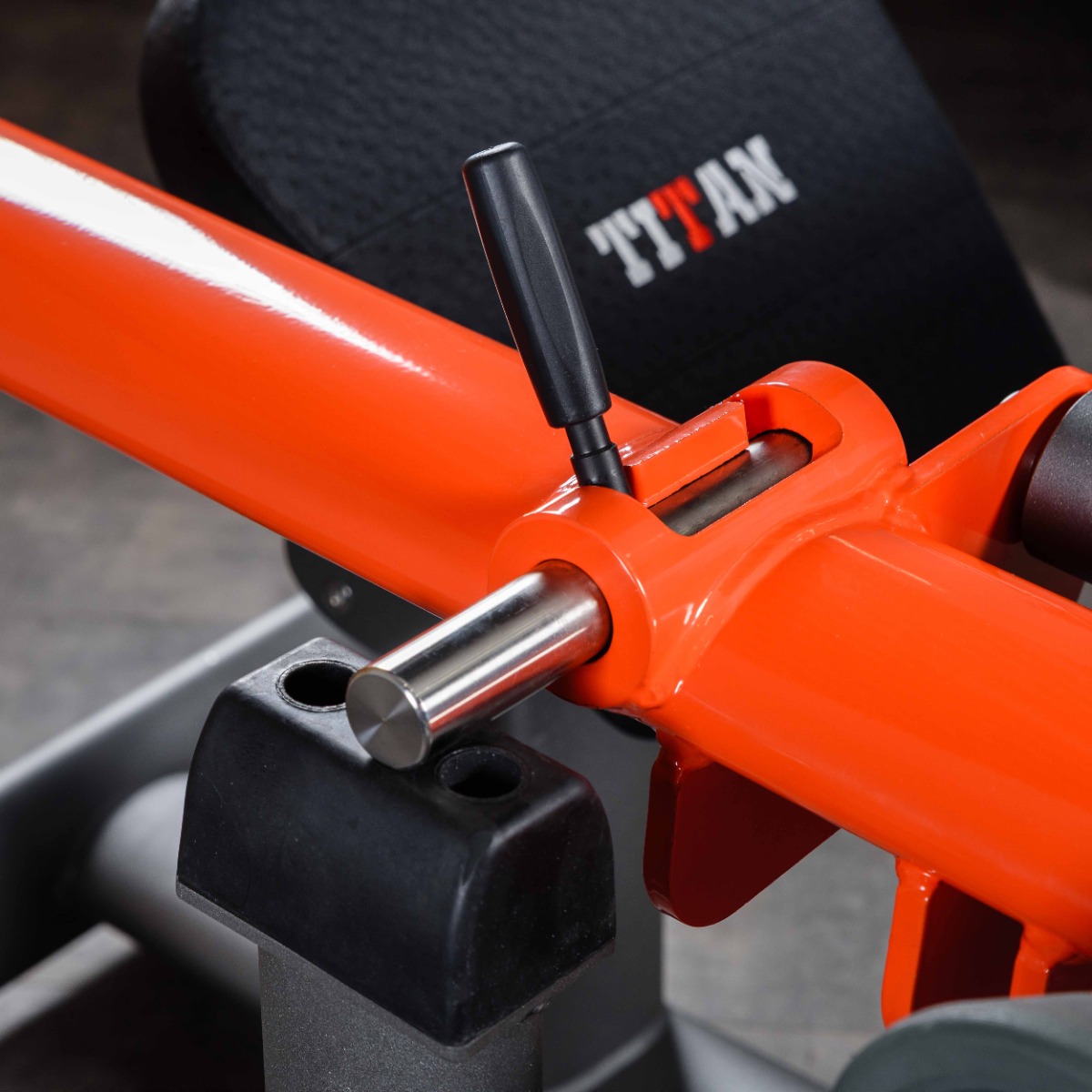 Узел «валик–рукоять» оснащён механизмом откидывания для удобного захода и выхода из тренажёра. Управление производится при помощи рычага фиксации, расположенного справа от валика. При потягивании рукояти на себя валик поднимается вручную и фиксируется в верхнем положении.