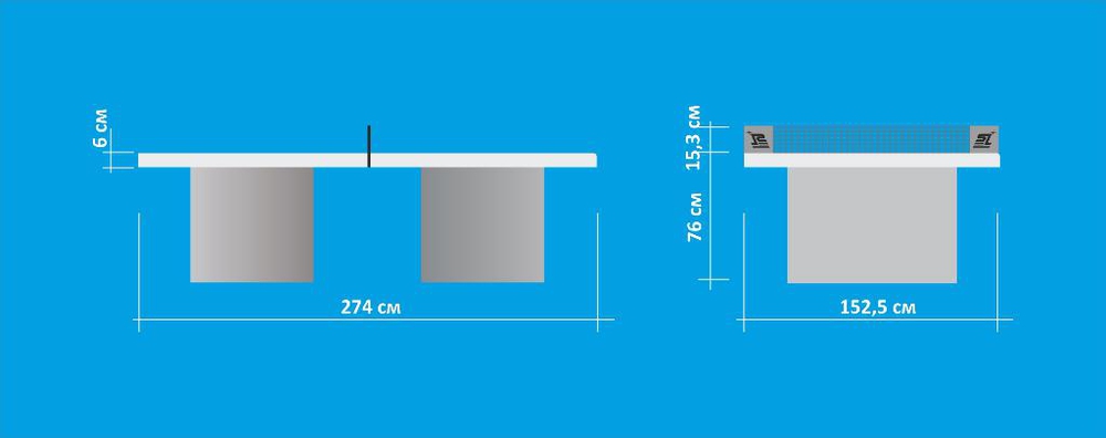 Размер (международный стандарт): длина 274 см, ширина 152,5 см, высота 76 см.