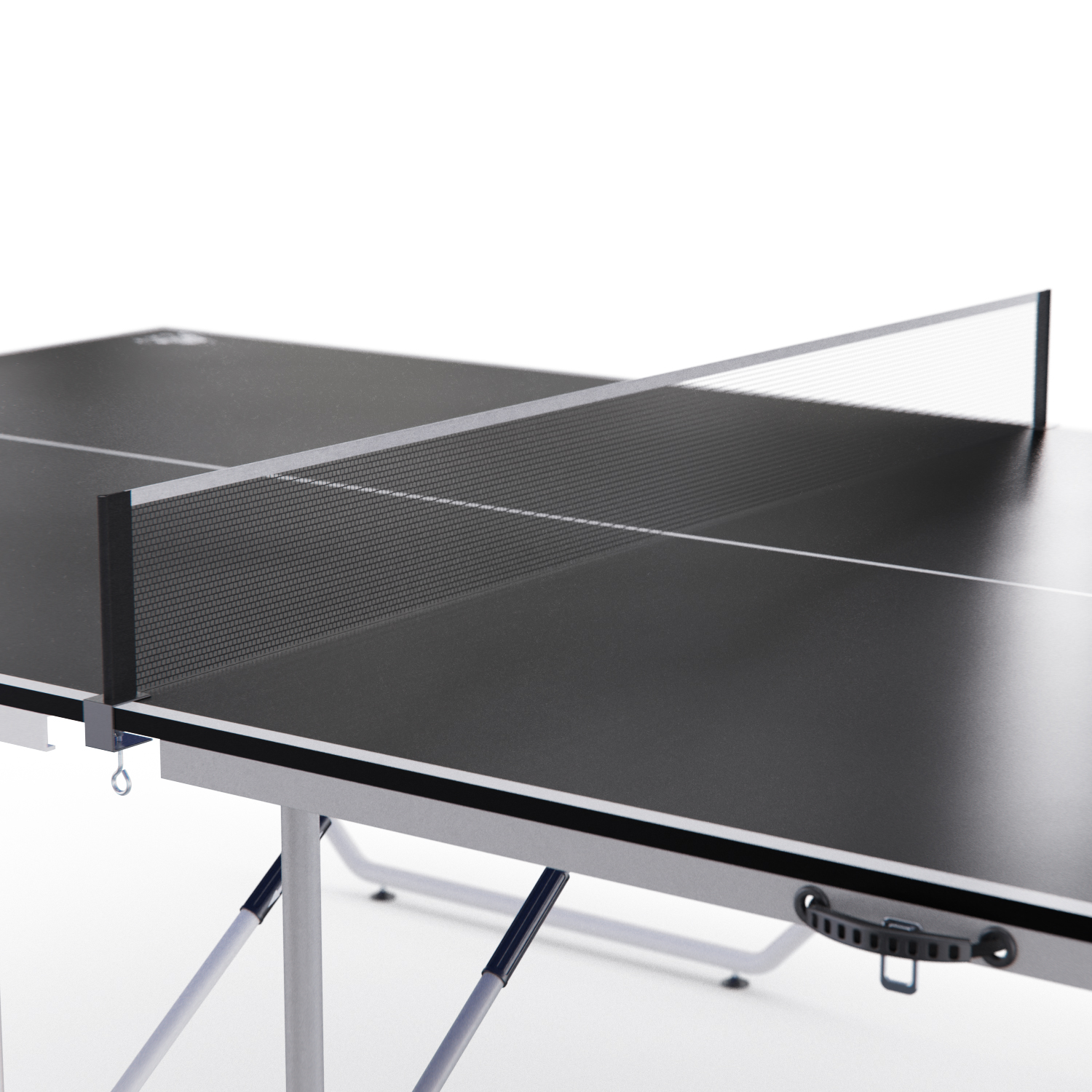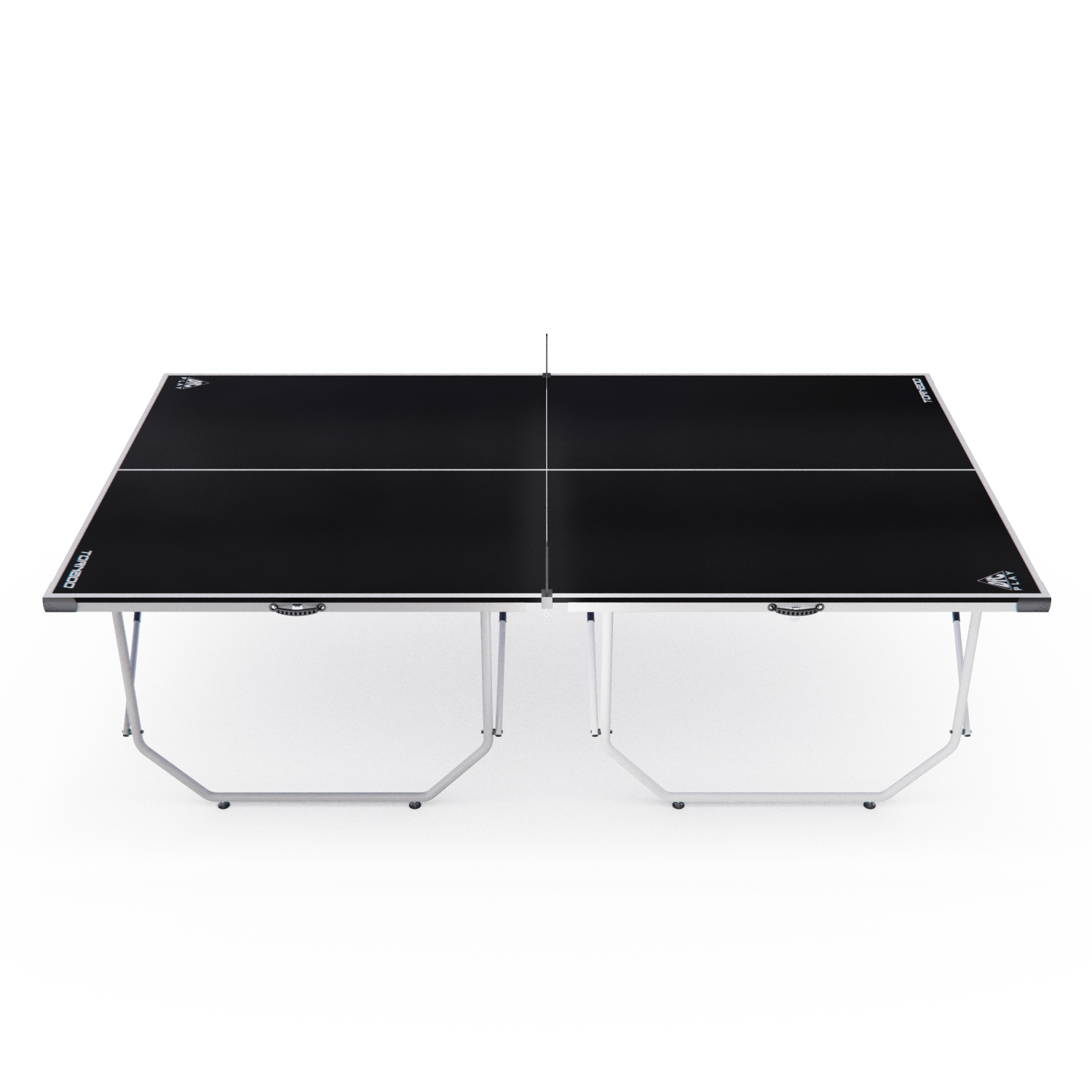 Размер стола в рабочем виде составляет 274 х 152,5 х 76 см, а в сложенном виде — 137 x 76,5 х 11,5 см. Толщина столешницы — 15 мм. Это гарантирует комфорт во время игры и стабильность при ударах мяча.