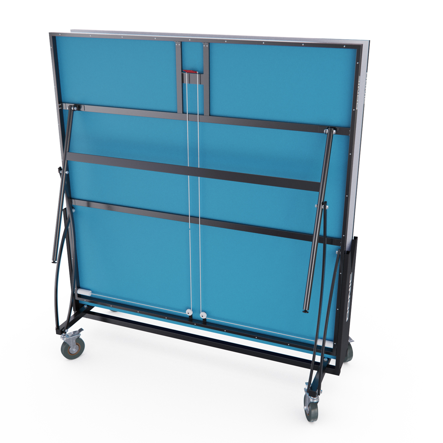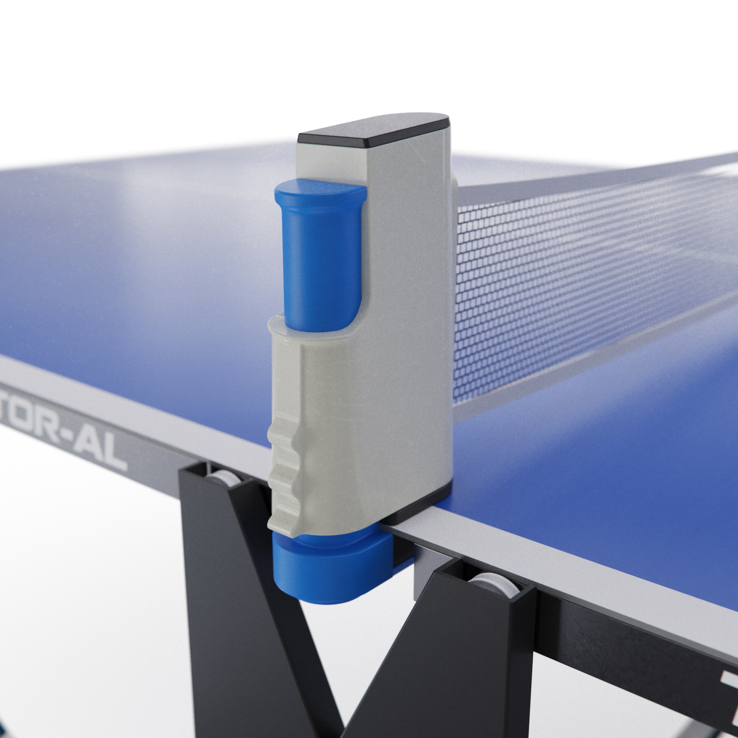 Игровая плита стола из композитного материала защищена алюминиевым кантом по краю. Столешница окрашена в 5 слоёв, что обеспечивает отличную защиту от влаги и осадков. Компактная система складывания. Сетка в комплекте. Стол имеет компенсаторы высоты. Наличие блокиратора в механизме складывания.