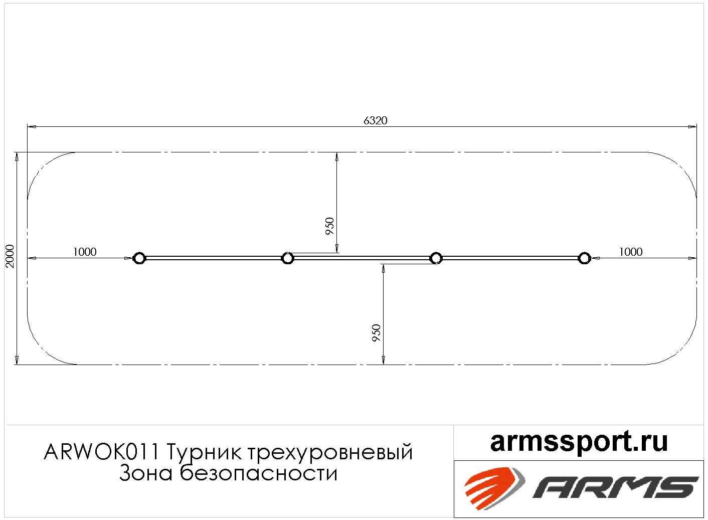 W262 Воркаут (рукоход трехуровневый, 5 турников) ZAVODSPORTA