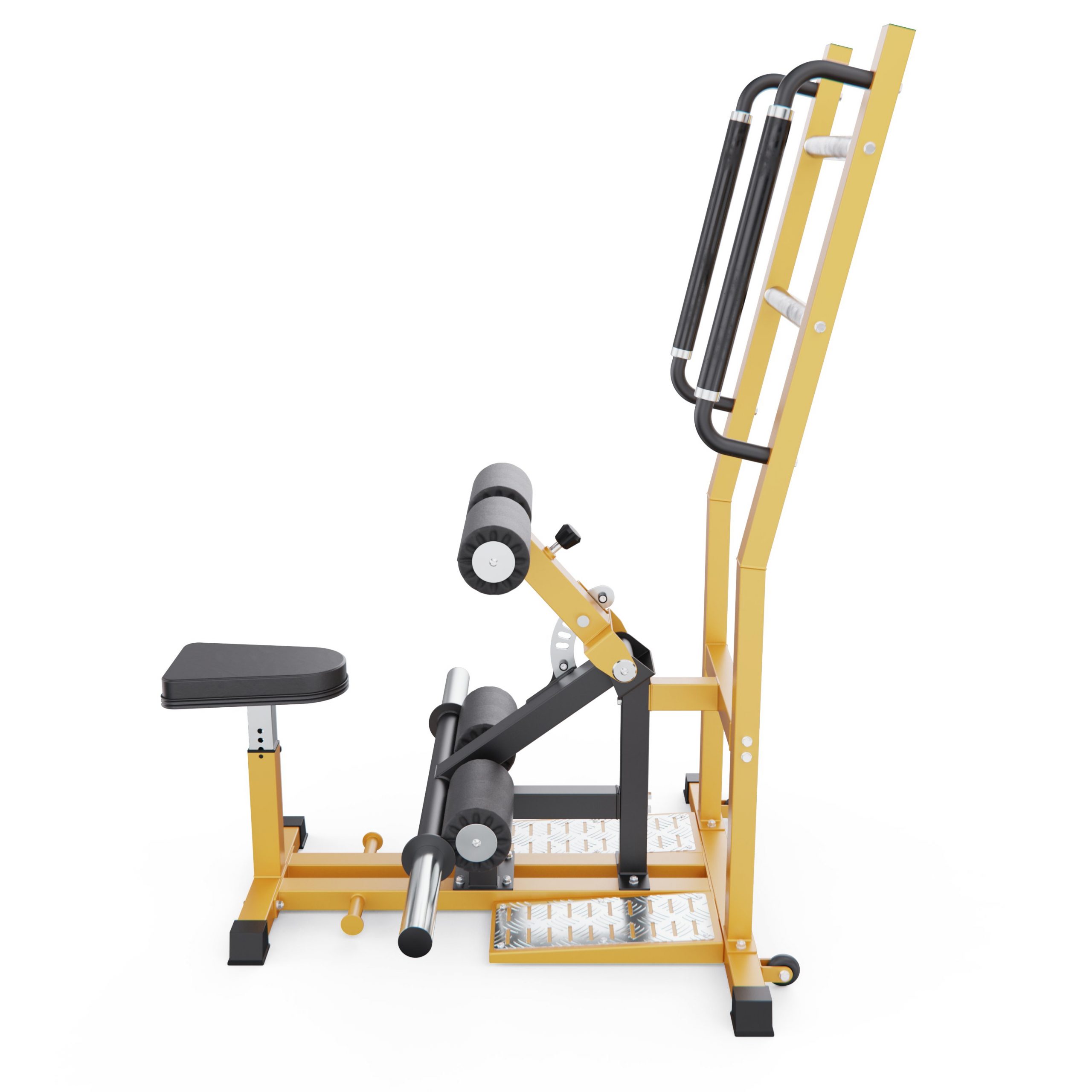 Сиденье размером 32 х 26 см регулируется по высоте в 5 положениях, что позволяет подстроить тренажер под индивидуальные особенности спортсмена. Для фиксации ног предусмотрены удобные валики длиной 21 см и диаметром 11 см, также с 5 уровнями регулировки. Валики изготовлены из плотной пены и покрыты износостойким полиуретаном, что обеспечивает комфорт и долговечность.