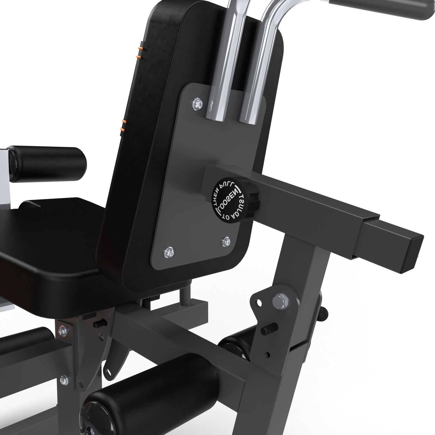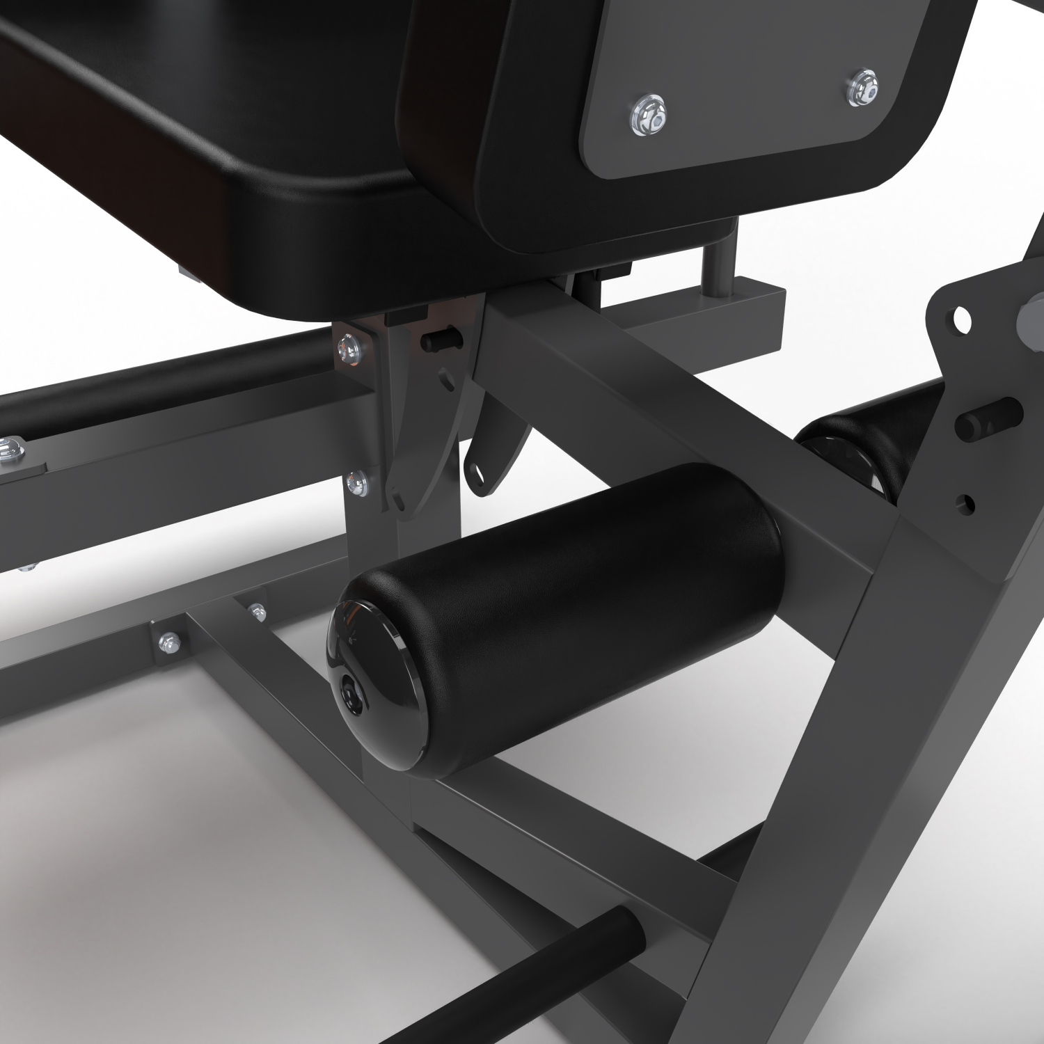 Максимальная нагрузка на валик для разгибания ног до 100 кг. Длина валика — 46,5 см, диаметр — 10,5 см. Фиксирующие валики съёмные и регулируются по высоте на 6 уровней. Длина каждого из этих валиков 17,5 см, а диаметр — 8 см.
