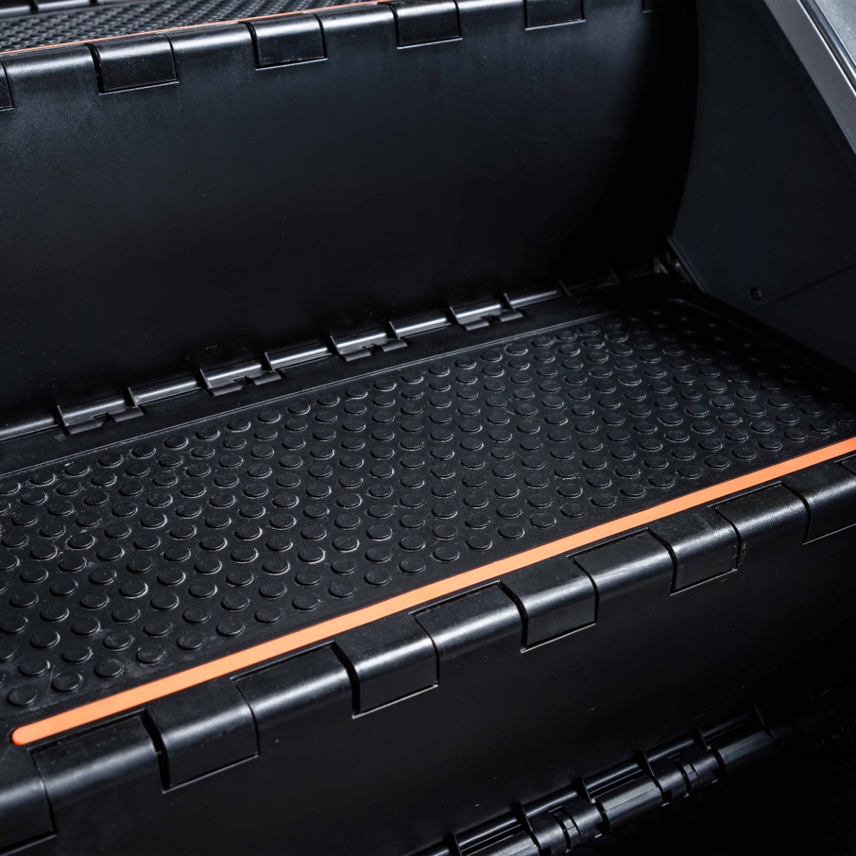 Две пары двухуровневый ступеней с рифленой поверхностью дают возможность сделать перерыв во время тренировки или выполнить подъём по ступеням одной ногой.