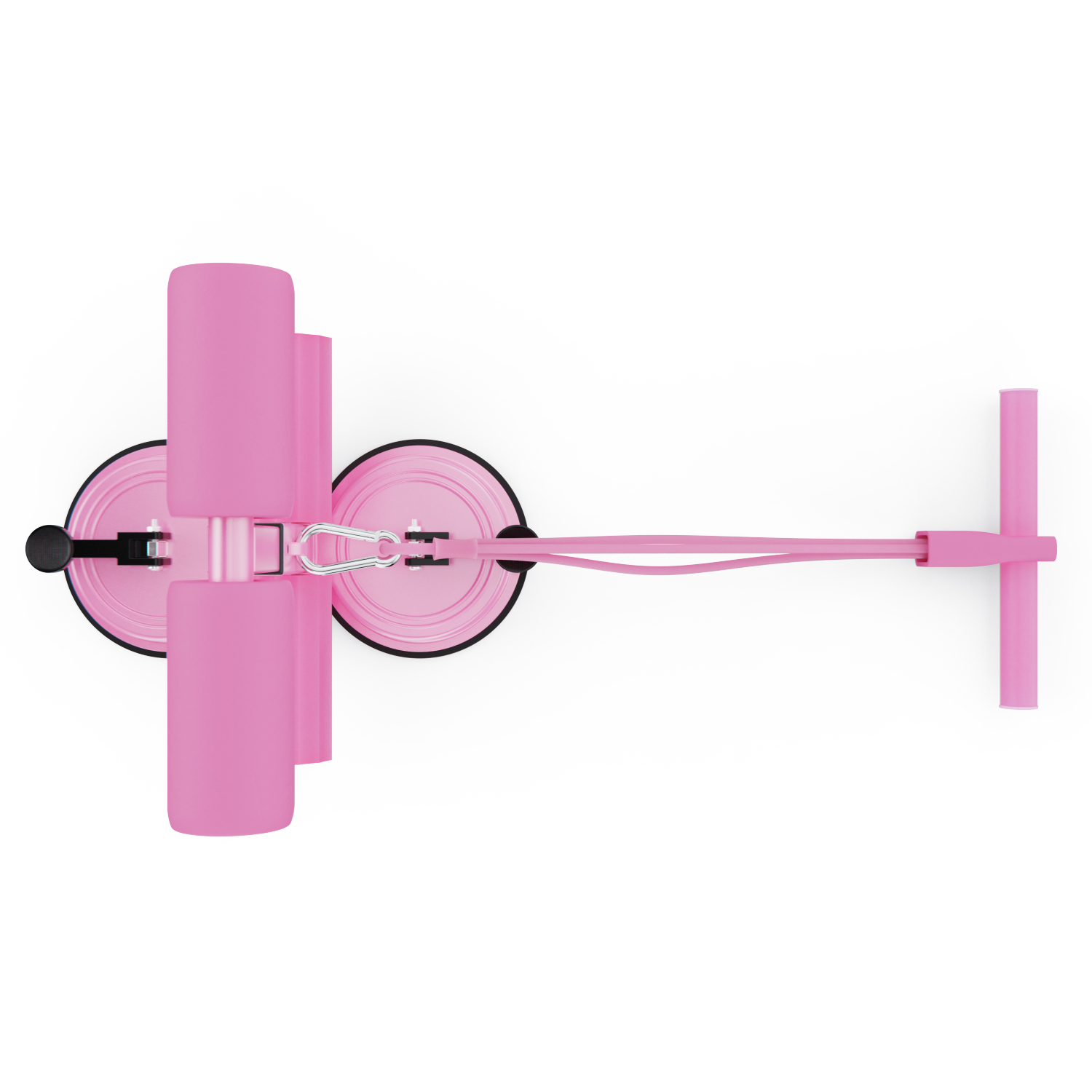 Тренажёр оснащён двумя мощными присосками диаметром 108 мм, которые обеспечивают прочное сцепление с полом и исключают скольжение во время упражнений. Длина рукоятки — 23 х 3 см, а мягкие валики диаметром 10,5 х 5 см плотно фиксируют стопы, делая тренировки безопасными и комфортными.