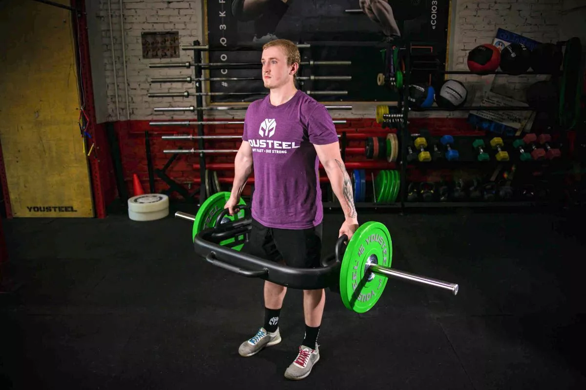 Гриф очень универсален и позволяет выполнять несколько движений, таких как становая тяга, выпады, становые тяги на одной ноге, приседания Зерхера, фермерские прогулки и т.д. Снаряд лёгок в освоении и отлично подходит для начинающих, а наличие высоких и низких ручек позволит вам использовать разные хваты во время подъемов.