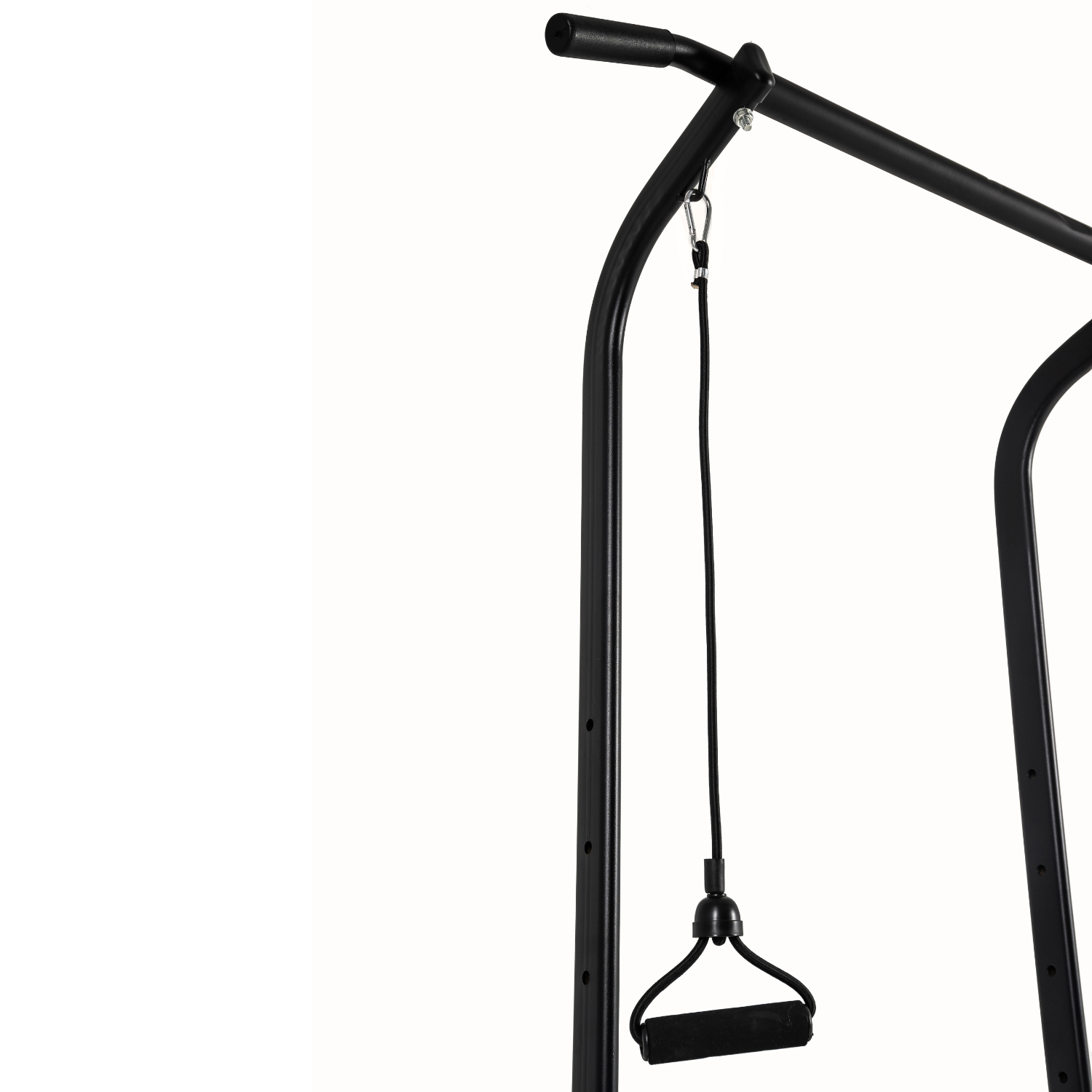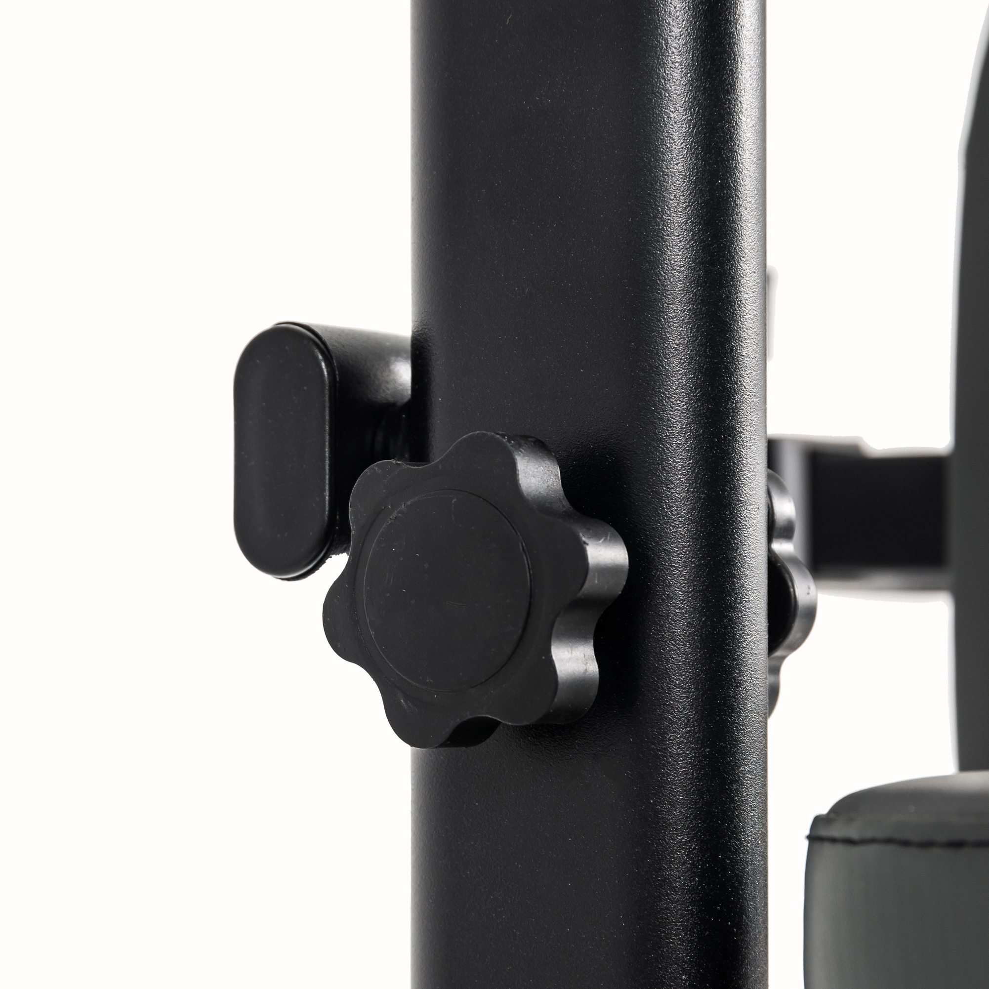 Турник регулируется по высоте от 180 до 230 см, промежуточная фиксация с помощью 4 болтов с ручками.