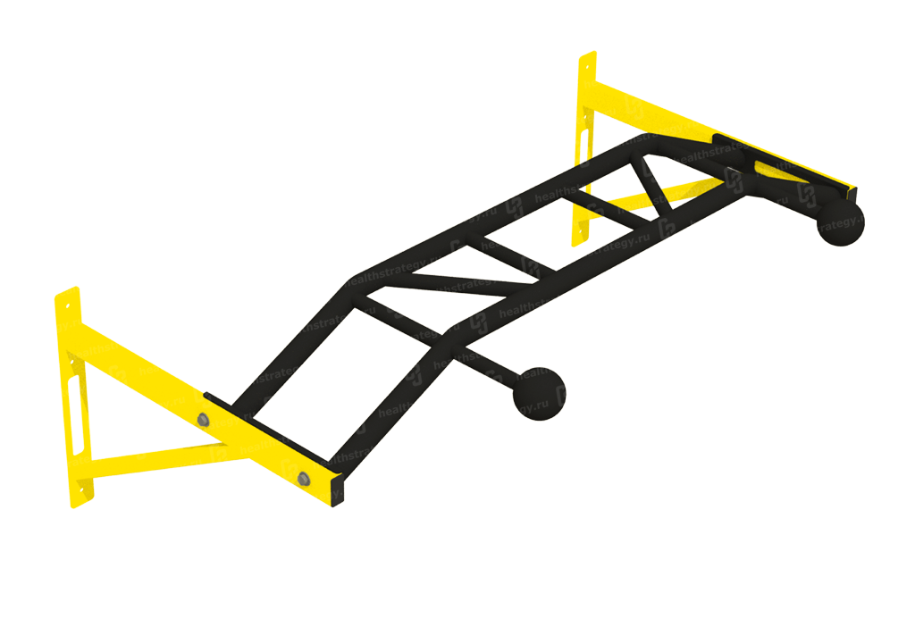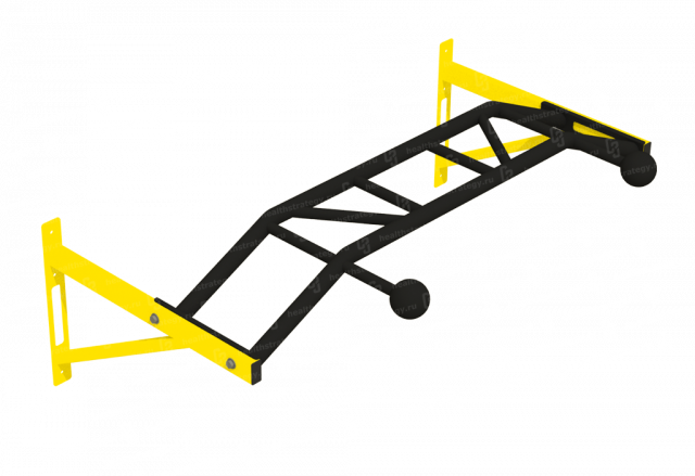 Турник имеет разборную конструкцию и изготавливается из толстостенных металлических труб для повышенной прочности и устойчивости к нагрузкам до 250 кг. Крепление к стене осуществляется с помощью 6 входящих в комплект анкерных болтов. Окрашен высококачественной порошковой краской.