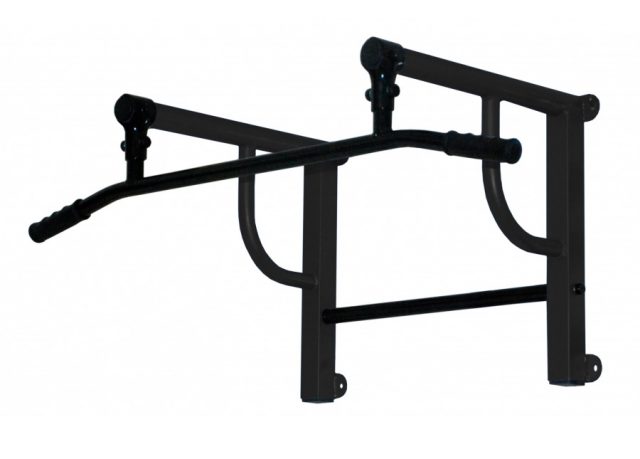 Пристенный металлический турник с рукоятками для широкого хвата. Занимает мало места