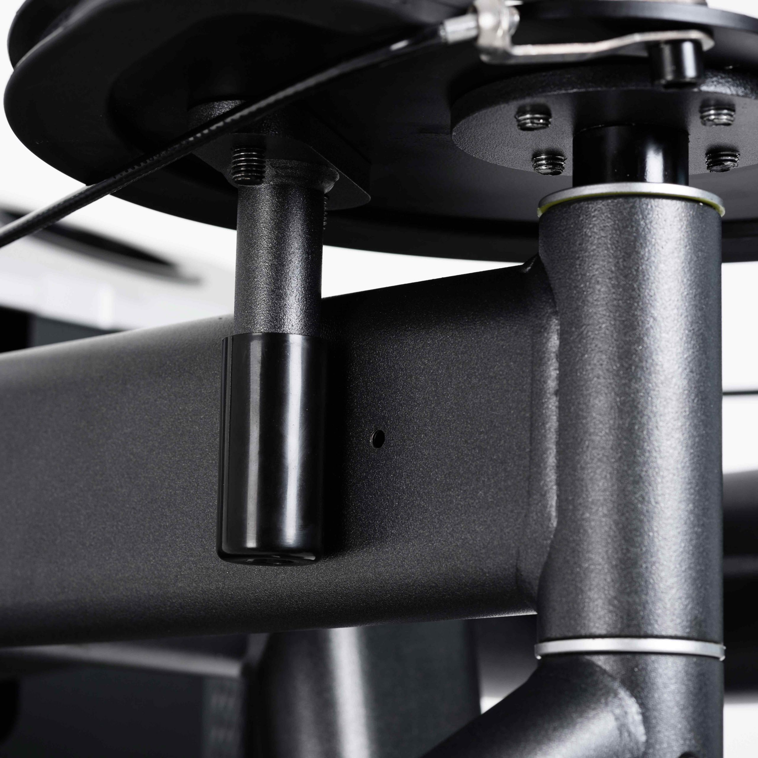 Три подпятника круглой формы выполнены из листового металла с резиновыми защитными кожухами, обеспечивают устойчивость тренажера и предохраняют напольное покрытие от повреждений.