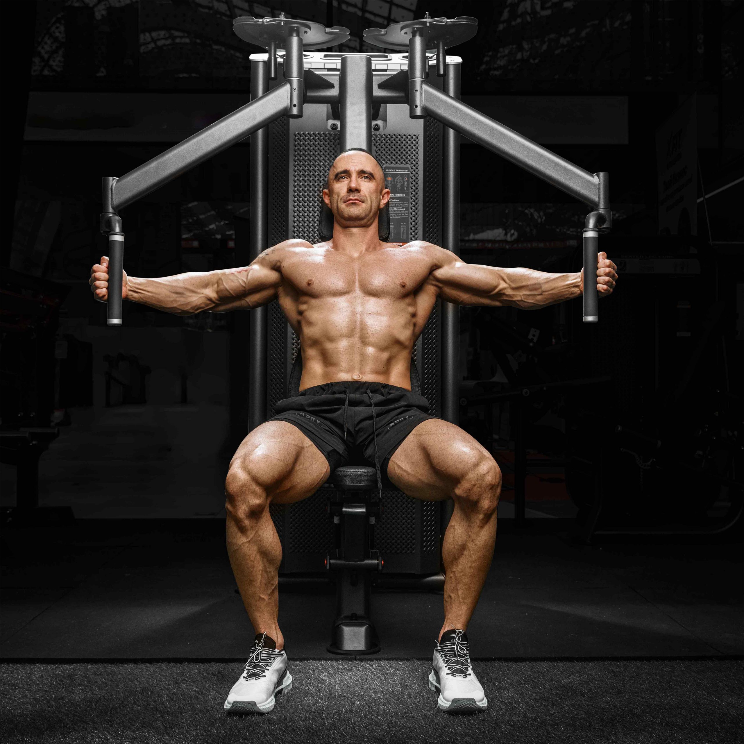 Профессиональный тренажер для коммерческого использования U2004 Баттерфляй предназначен для изолирующего упражнения на большие грудные мышцы. Принцип работы заключается в сведении рычагов перед собой.