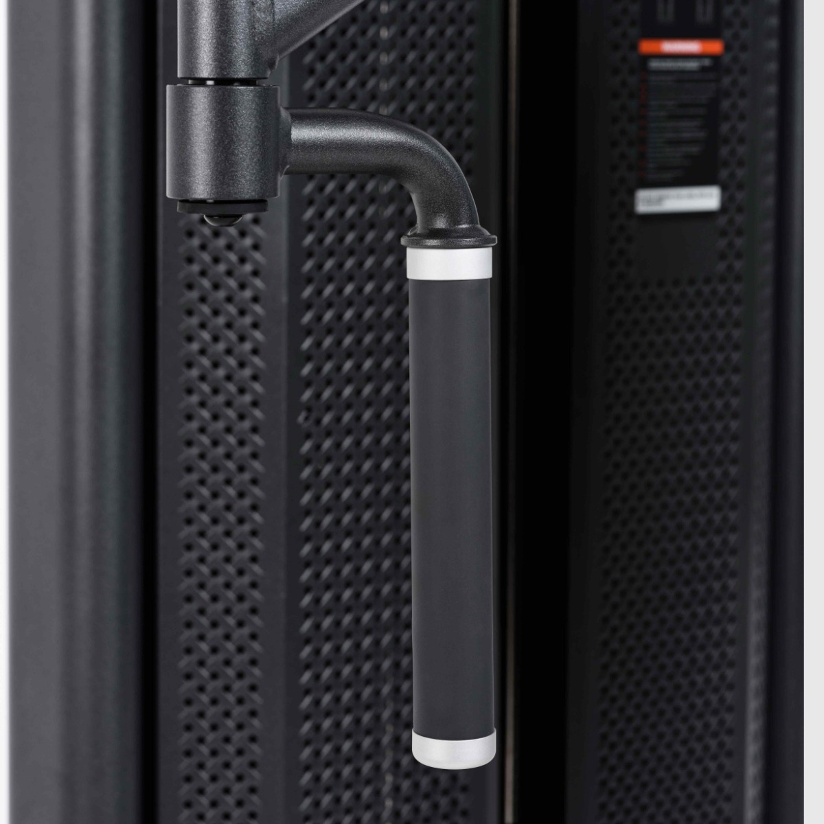Вращающиеся рукоятки выполнены из металлической трубы с резиновым покрытием. Торцы закрыты декоративными алюминиевыми заглушками.