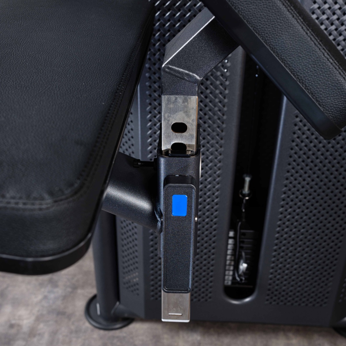 Верхняя часть грузоблока закрыта анодированным алюминиевым коробом с углублениями круглой и прямоугольной формы для хранения личных вещей.
