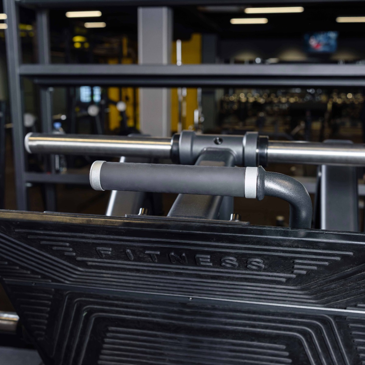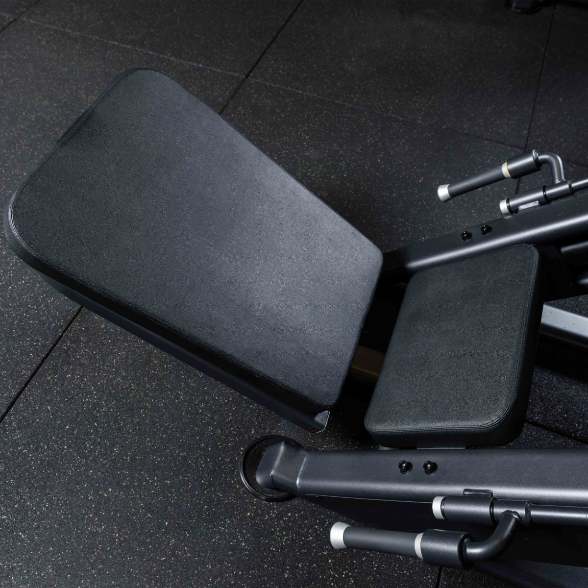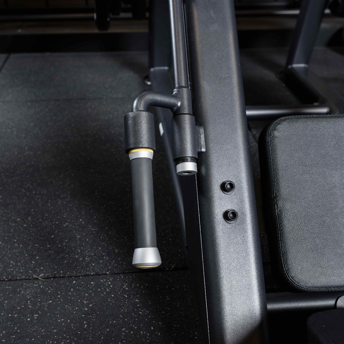 На тренажере закреплены четыре металлических накопителя для работы со свободными весами и два накопителя для хранения свободных весов. Накопители оборудованы кольцами из плотной резины для предотвращения механических повреждений при соприкосновении дисков с рамой.