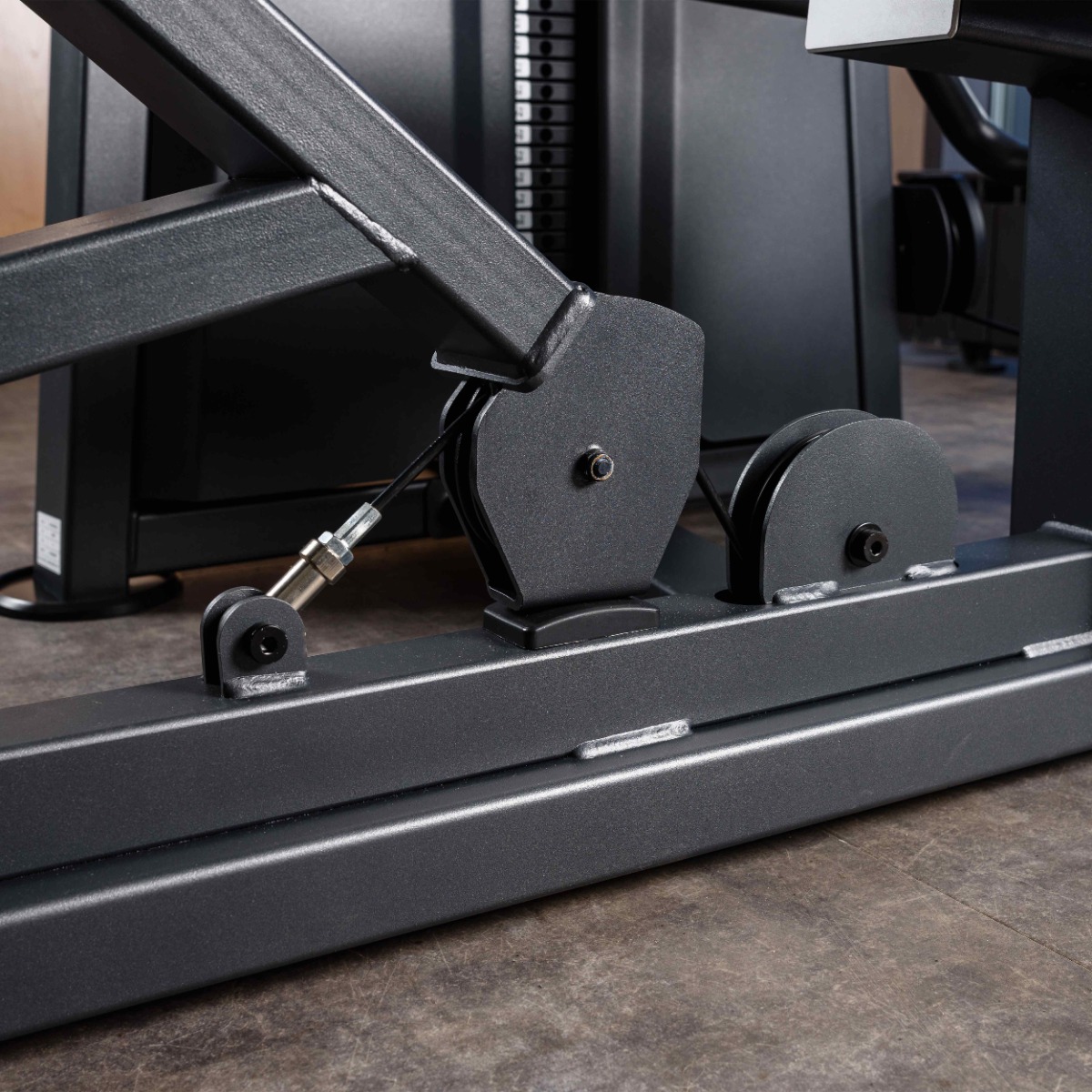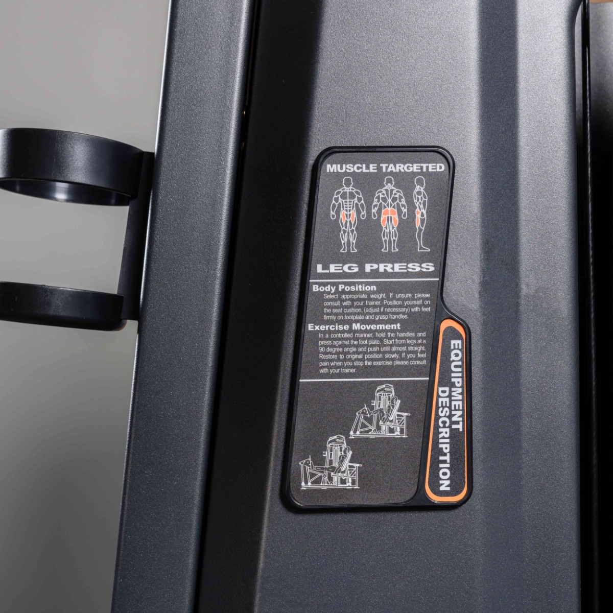 Тренажер предназначен для жима ногами, базового упражнения для мышц ног в тренажере под углом 45 градусов, которое заключается в сгибании/разгибании коленного сустава, находящегося под весом платформы.