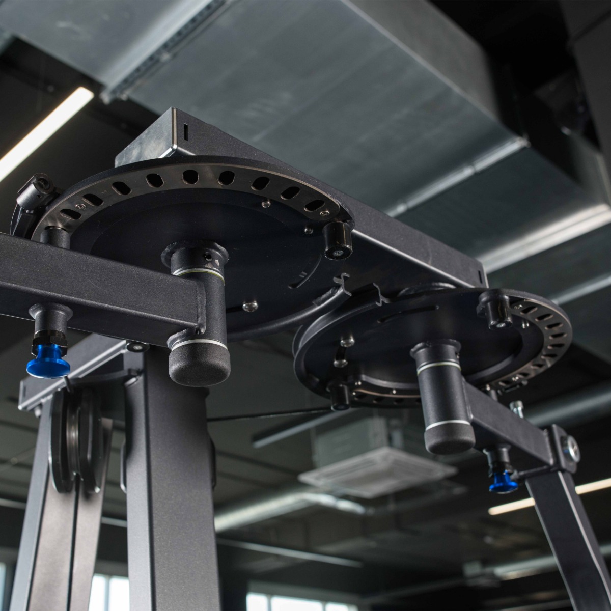 Многопозиционные рукоятки с резиновым покрытием с декоративными заглушками – наконечниками из полированного нержавеющего металла зафиксированные болтом, обеспечивают разнообразие упражнений.