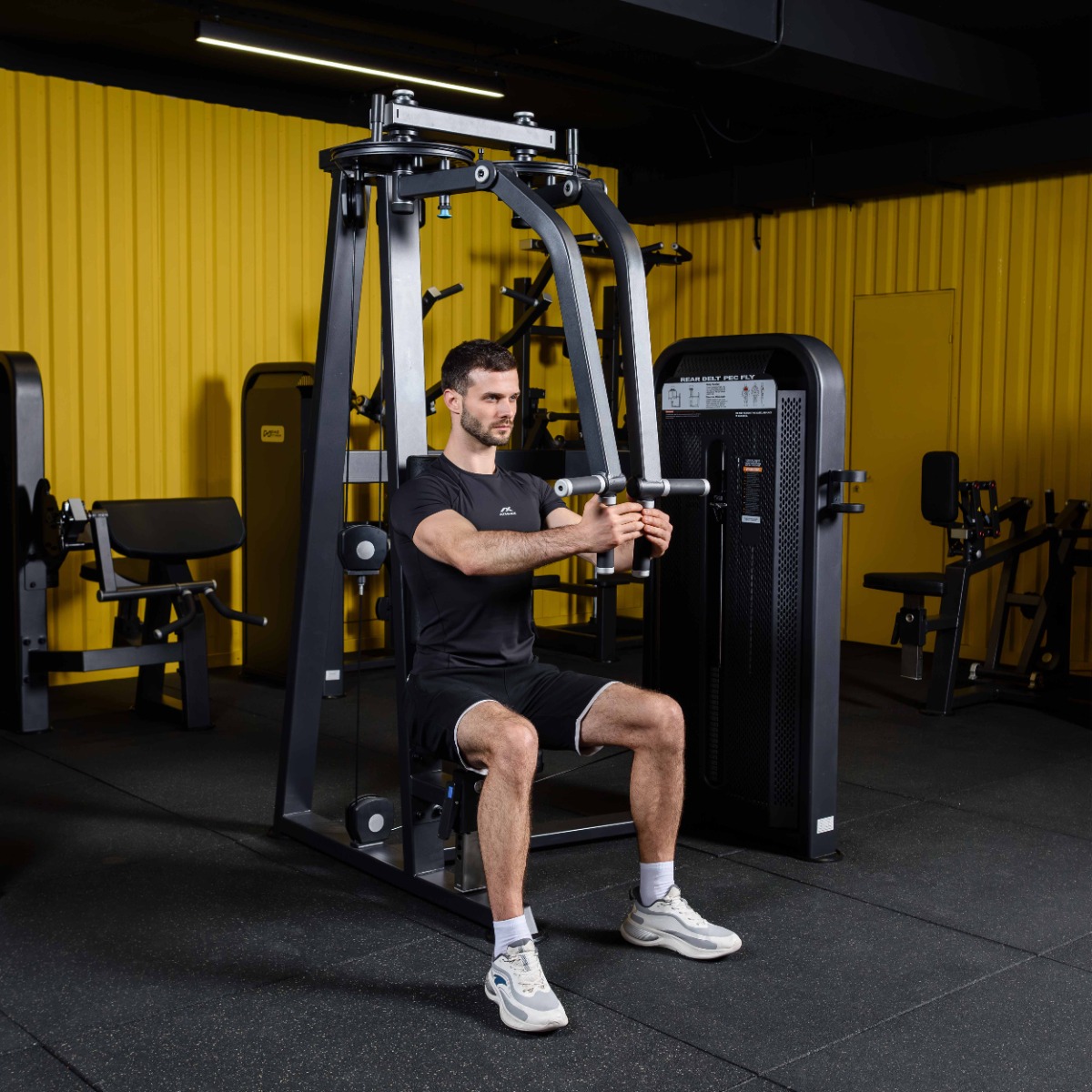 Тренажер предназначен для выполнения двух видов упражнений на различные группы мышц. Для тренировки дельтовидной, трапециевидной и ромбовидной мышцы, исполняемое упражнение будет на разведение рук. Упражнение на сведение рук тренирует большую грудную мышцу, трицепс и передние дельты.