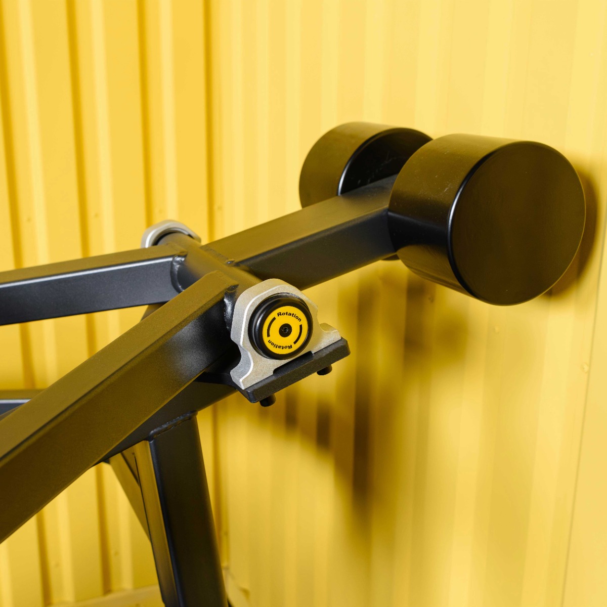 Универсальная форма рукояток с резиновым покрытием с декоративными заглушками – наконечниками зафиксированные болтом, из полированного нержавеющего металла обеспечивают разнообразие упражнений.