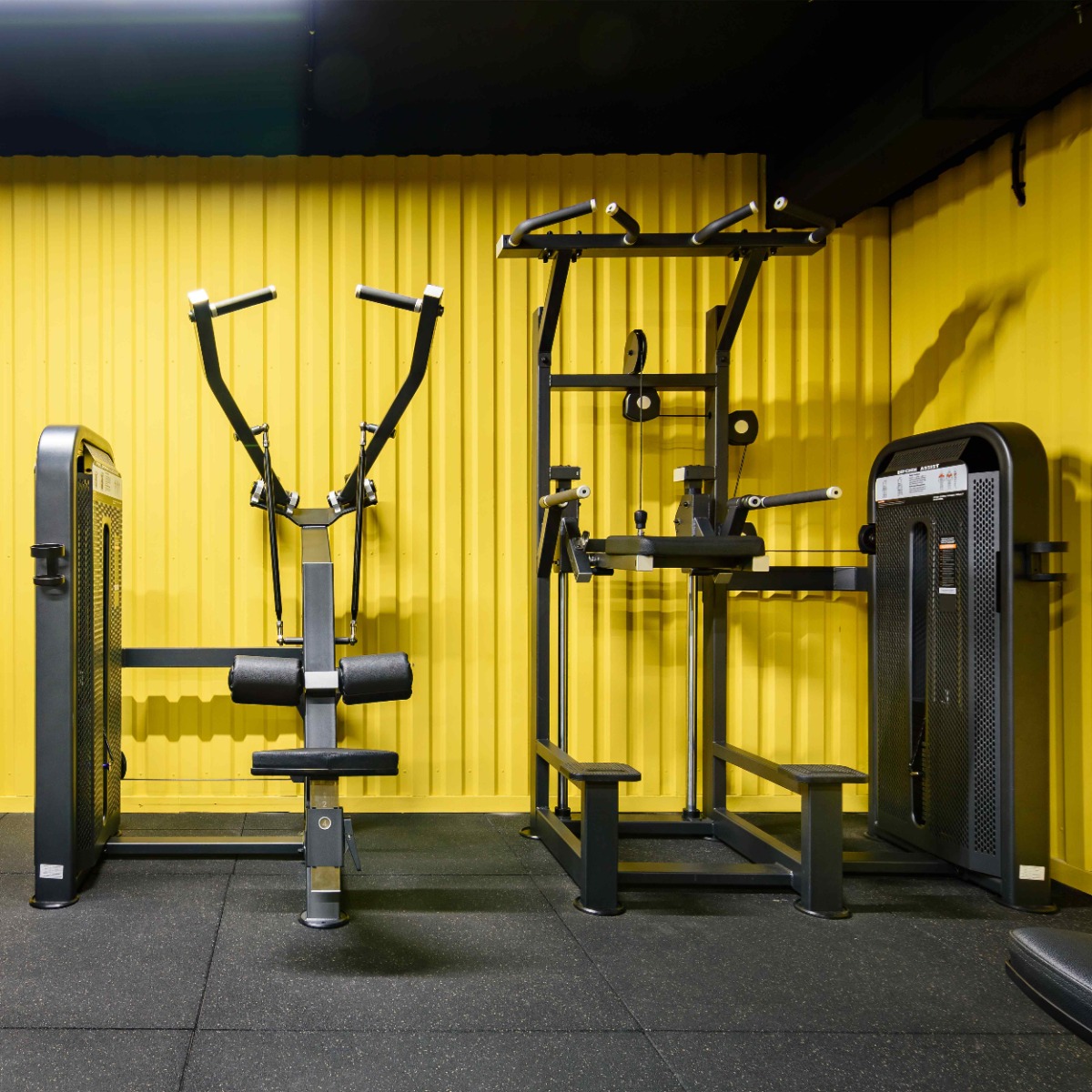 Металлическая, перфорированная защита весового стека с обеих сторон, выполнена из листового метала толщиной 2мм, с ребрами жесткости у основания, примыкает к несущей раме через скрытое болтовое соединение сечением 6мм в 8 точках, что повышает эстетические и эксплуатационные параметры тренажера.