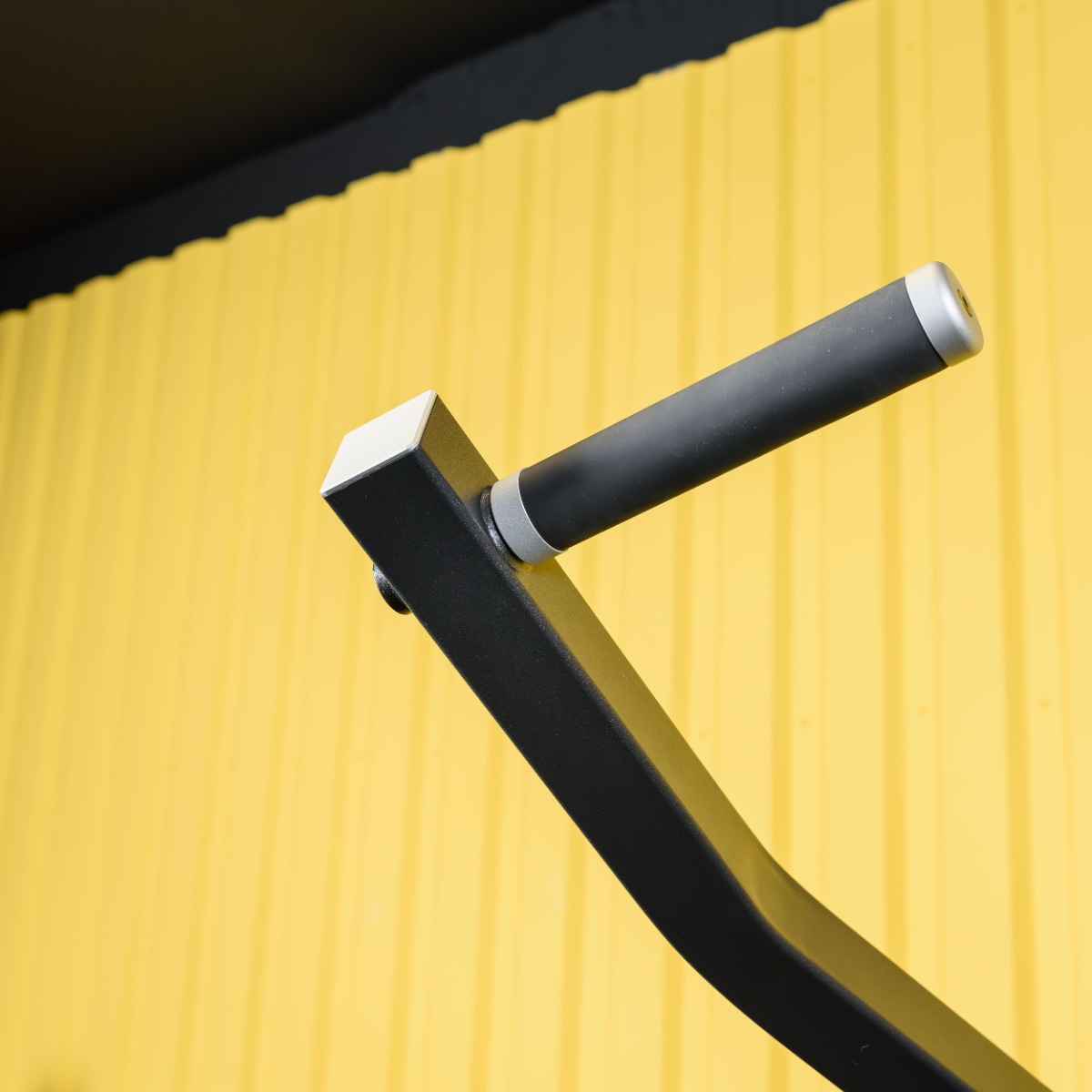 Гриф для тяги выполнен из металла с резиновым покрытием и декоративными заглушками – наконечниками зафиксированные болтом. (сменный).