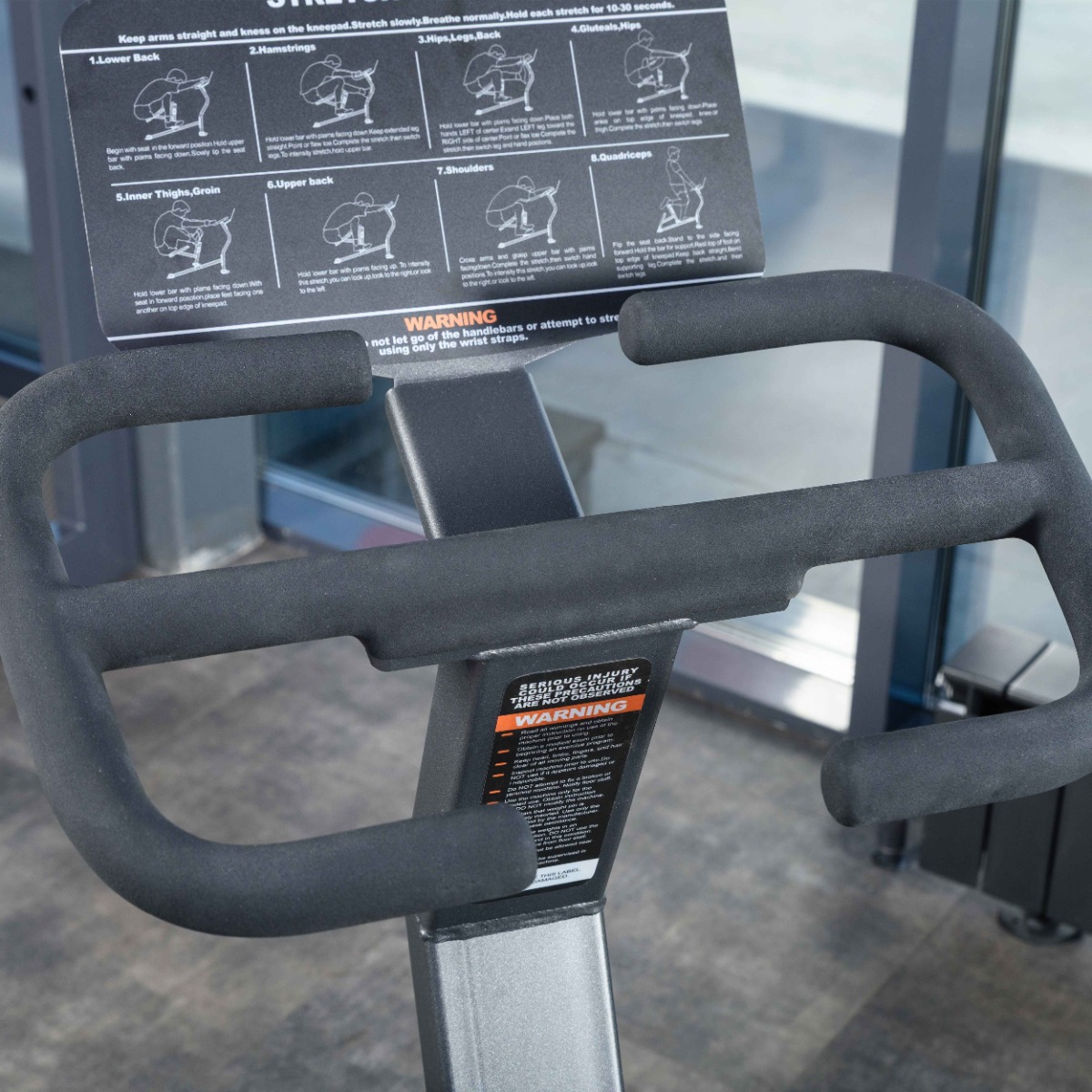 В передней части предусмотрены два транспортировочных колеса, обеспечивающих удобство перемещения тренажёра без его подъёма.