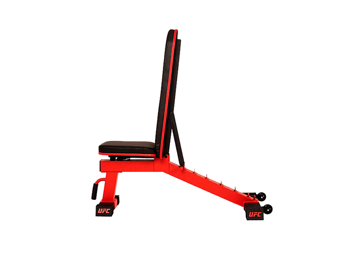 Скамья универсальная Deluxe UFC выполнена из прочной стали толщиной 1,5 мм и предназначена для выполнения упражнений с гантелями и штангой. Такая скамья станет хорошим дополнением для домашней гимнастики, а также идеально подойдёт для выполнения различных силовых упражнений. Усиленный металлический каркас и продуманная конструкция обеспечивают высокую устойчивость тренажера при выполнении любых упражнений. Она идеально подходит для тренировок руки, плечей, груди и спины.