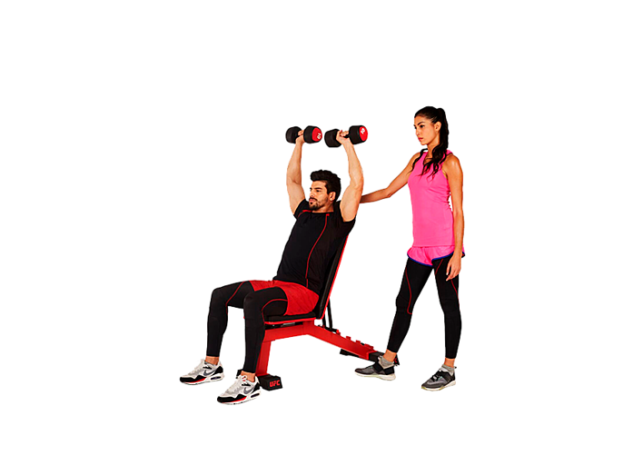 Универсальная скамья оснащена надежной системой регулировки наклона: задняя спинка имеет 7 положений, а сидение — 3.