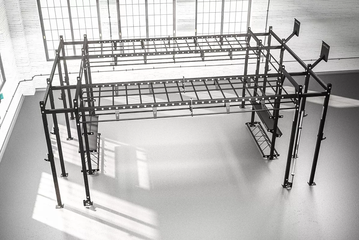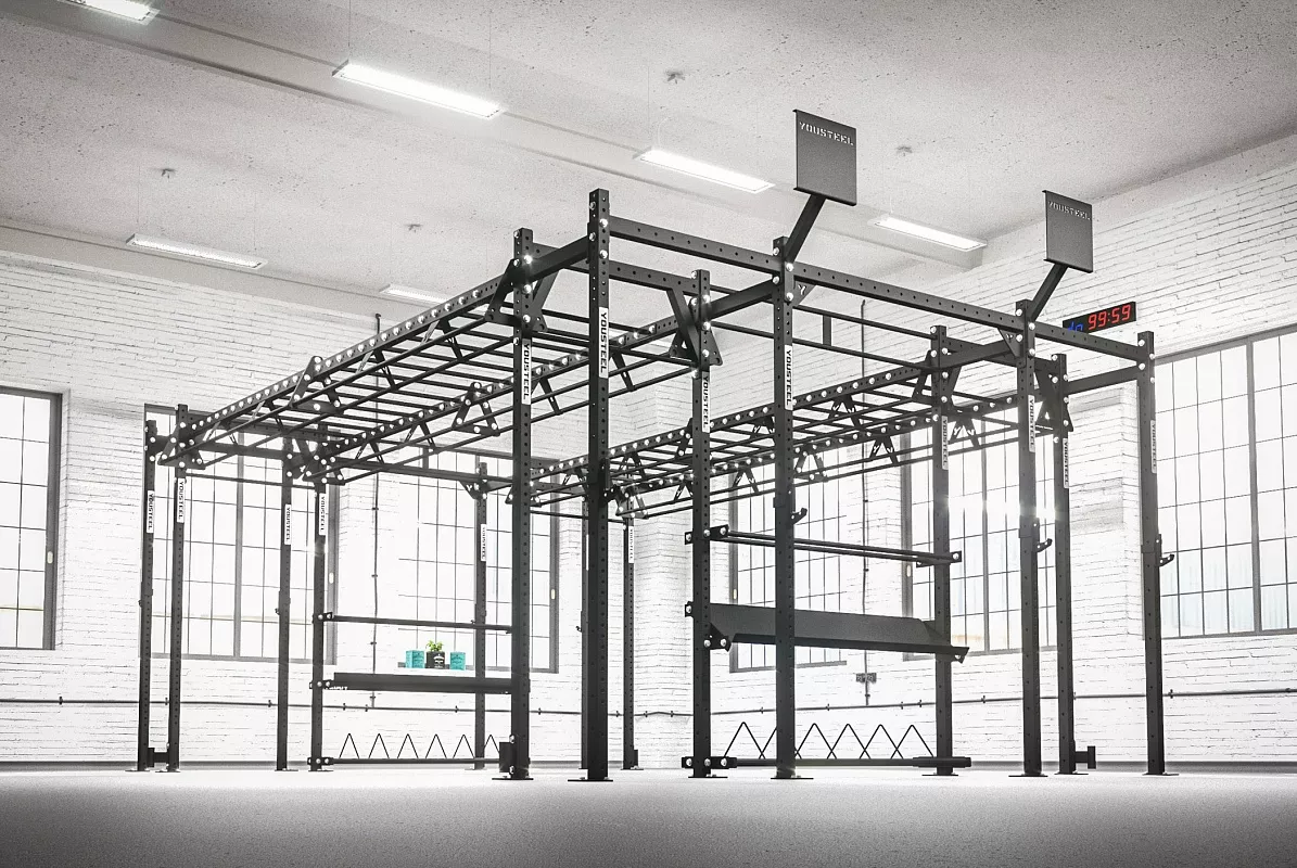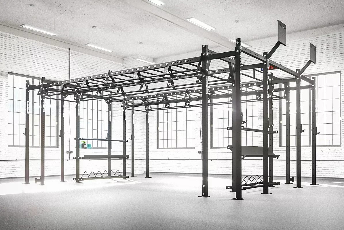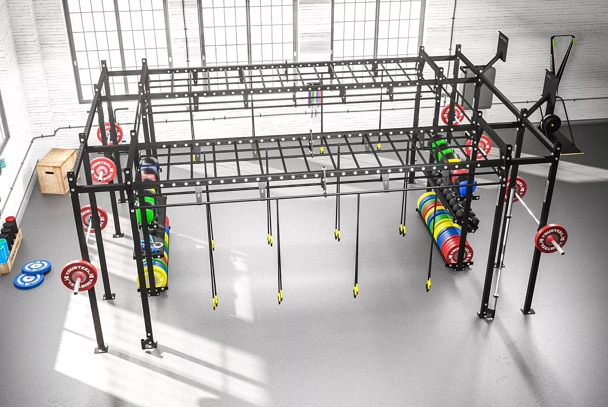 Универсальная рама с балками 6000-3000 спроектирована для залов, которые практикуют работу с подвесными петлями типа TRX. Цель ее разработки — сделать полноценное место для силового и функционального тренинга на площади от 200 до 400м.кв.